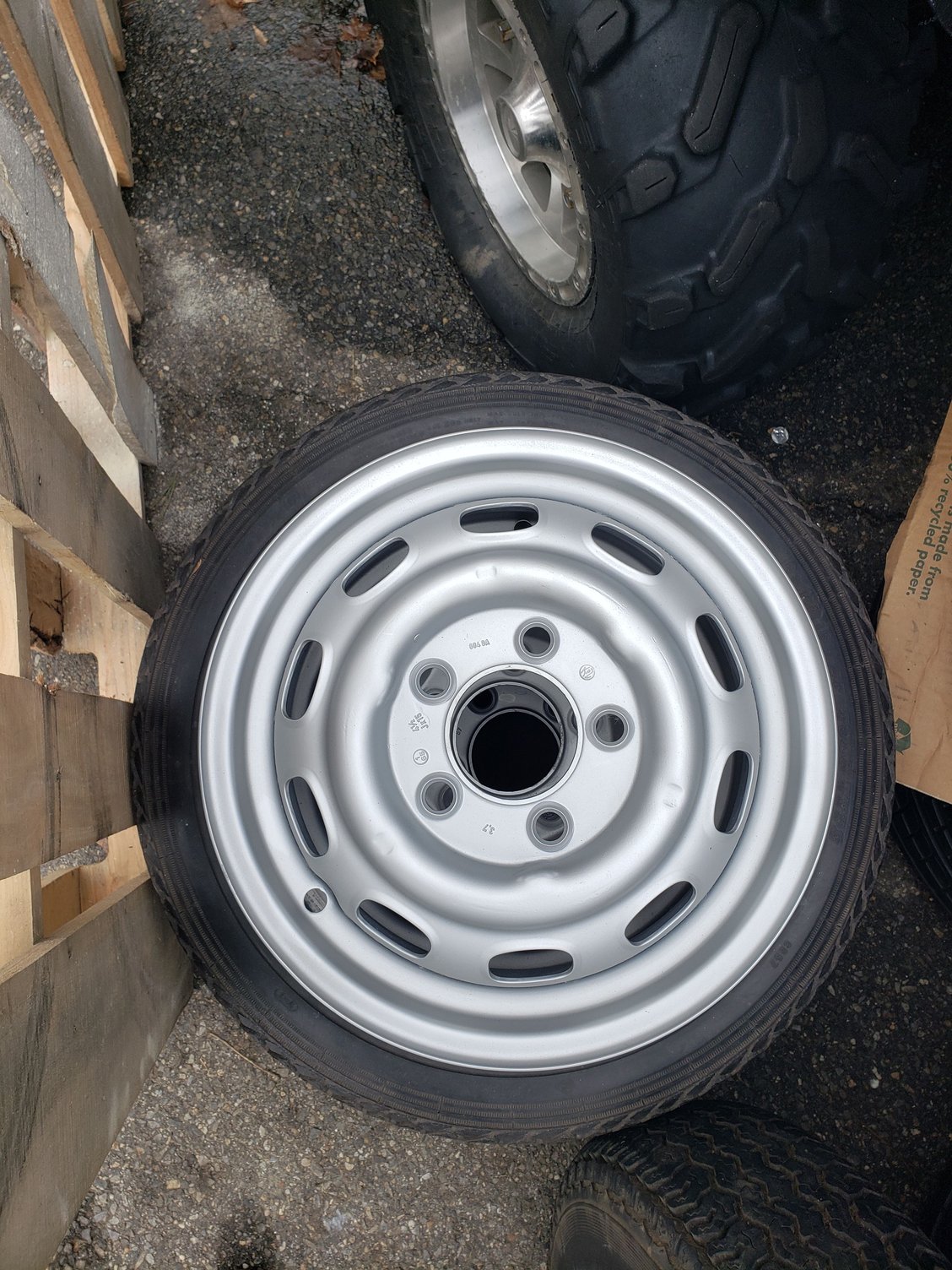 the 4th wheel is a drum brake style 356 wheel. The date stamp would determine the value on that wheel.