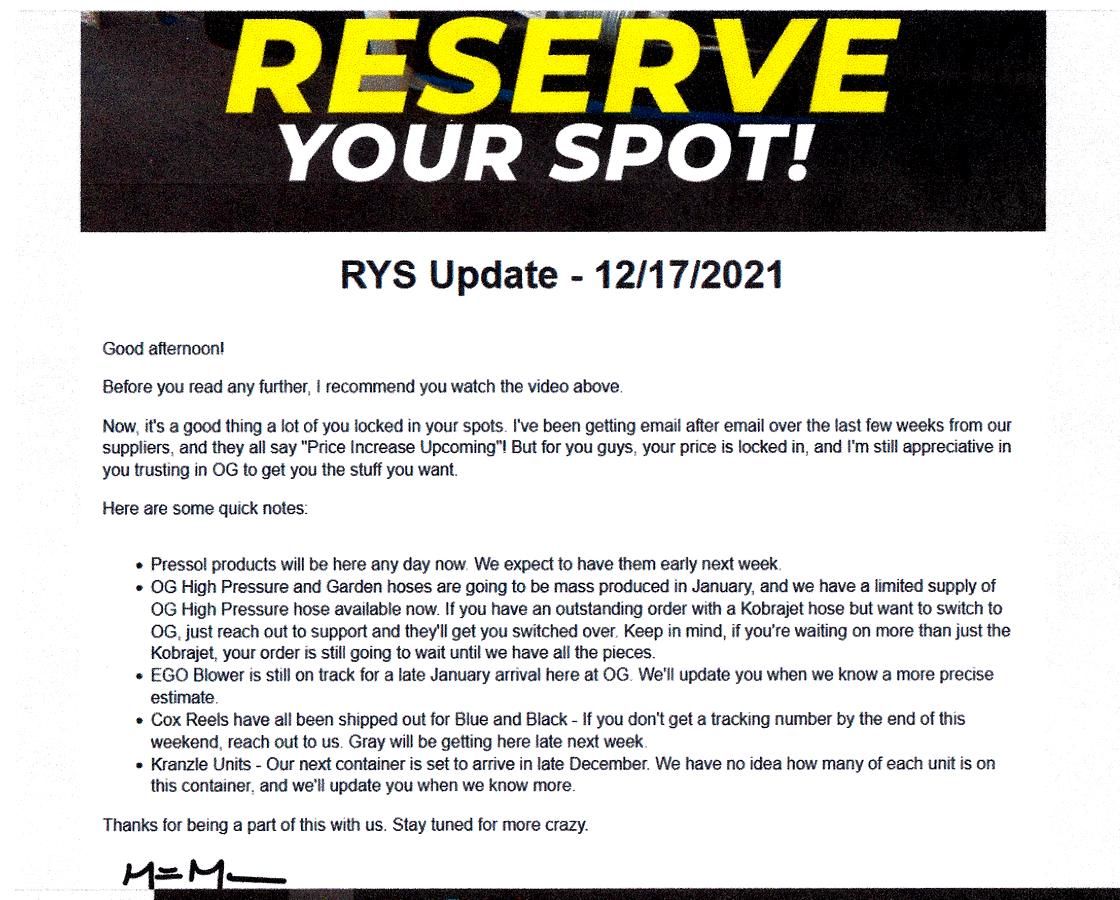 Reserve Your Spot - December 3rd Update