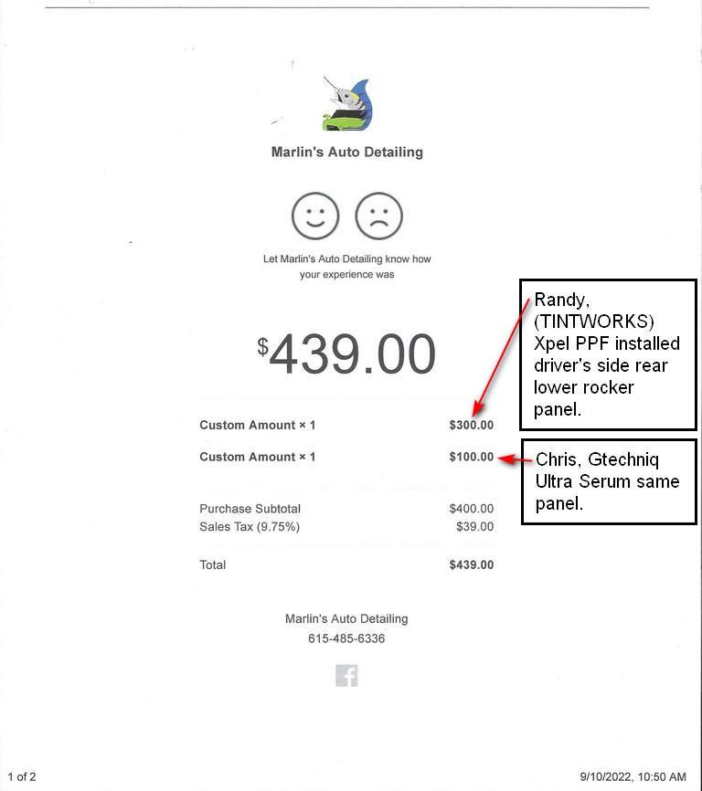 Below is the invoice from TINTWORKS (Randy) and Marlins Auto Detailing (Chris).