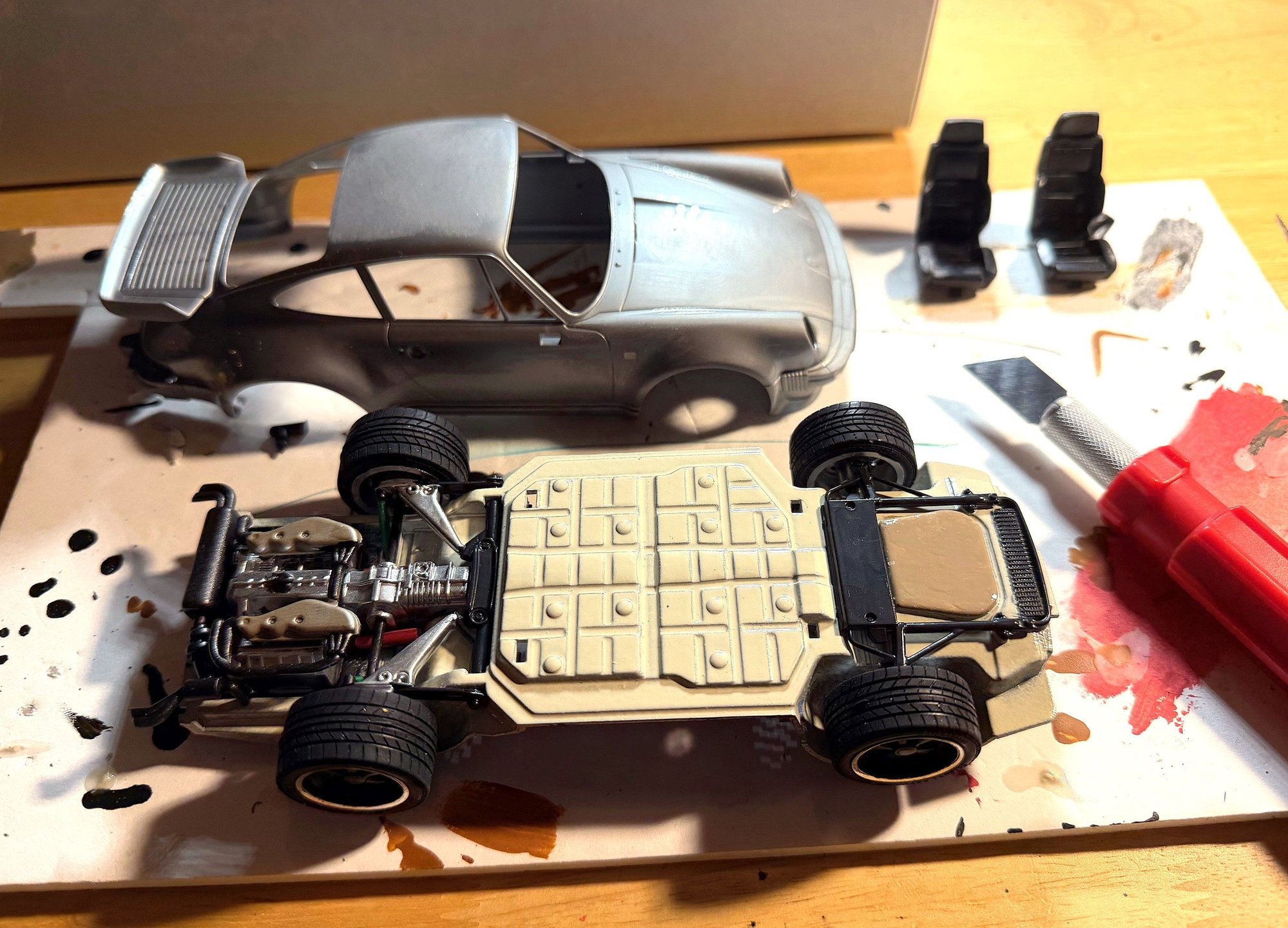 Project almost complete, first drive. Final tuning left then a good underside clean and nap time until the salt clears. I have some very minor and reversible work to do to make the car mine (leather shift boot, color wheel crests, set of NOS yellow fog light lenses, circa '80's NOS Lucas eCodes), careful refresh of the plastic trim and that is about it. I did add a Porsche CHMSL from a later 930 in the name of safety. ~50k mile, no bodywork, one owner time warp car that fell into our laps. It drove ~950 miles in the past decade and last drove in '23 hence the mechanical work. Cannot wait for Spring, like being a kid again and getting a Christmas present that you cannot use First world problems...