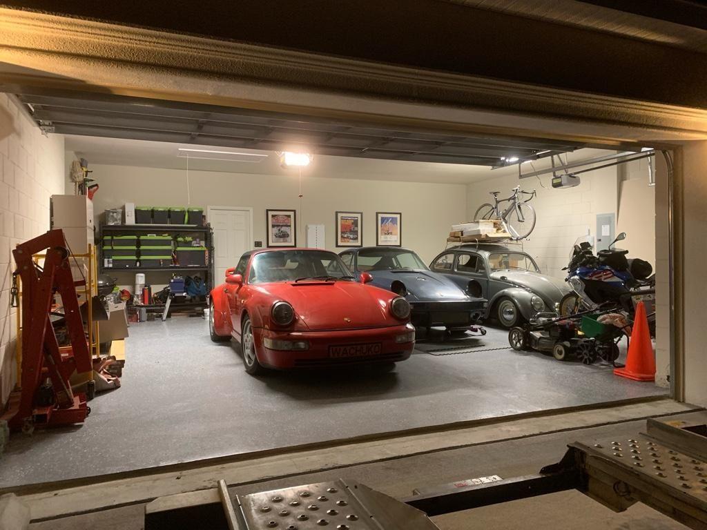 Back in the garage... still need to get rid of more crap to be able to have the underneath clear to work on it at any time... hate to have to move stuff around to be able to work on it...