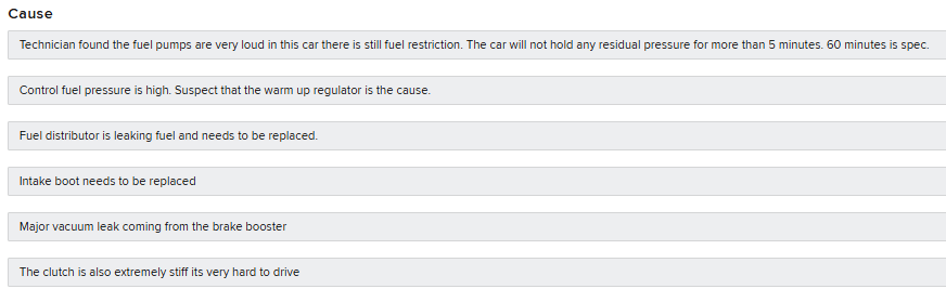 any thoughts ? See attached Before jumping into replacing big CIS parts, I suggested start by fixing the obvious vacuum leaks (intake boot and brake booster) and then recheck pressures? Parts are a challenge I’m told