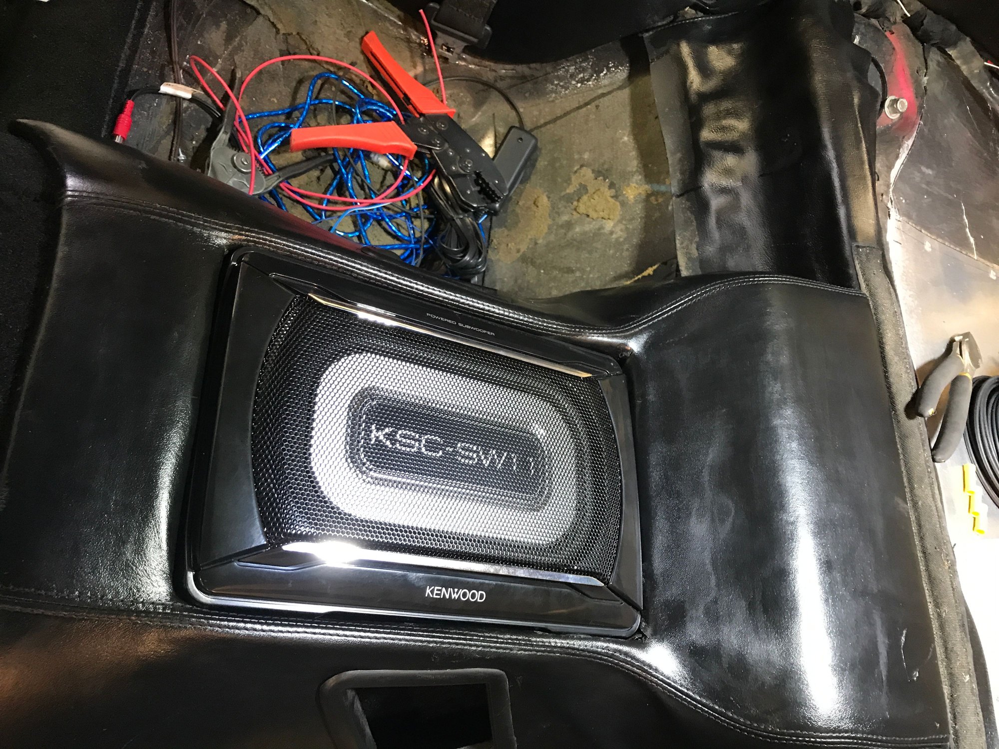Finishing up the interior on my LS conversion and was looking for a place to mount my sub because it would not fit under the seats and I did not want to mount it in the foot well or the back deck. So this is what I came up with