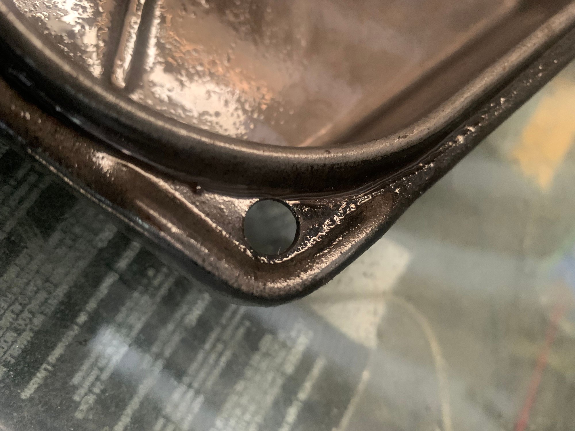The bolts were torqued way over 8 ft Lbs the I lower portion is not warped but noticed on side leaking the most that the bolt hole is not completely flat. It didn’t seem they completely cleaned the pan and may have added to this issue.