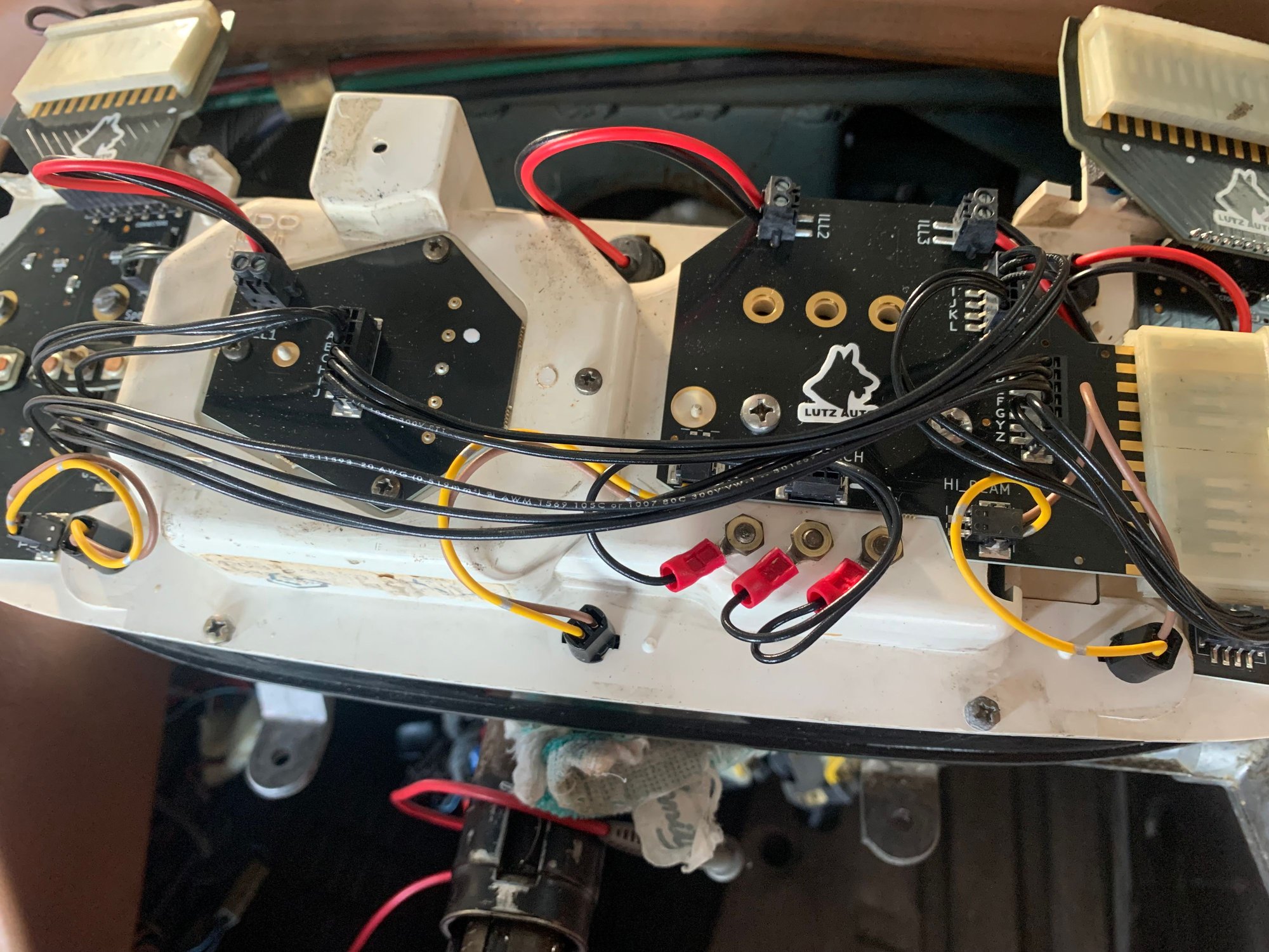 As per the attached short vid I have connected Pulse 1L, 12+ 11L and 12- 11R from the connectors to the back of the new Lutz board and get the speedo to work.