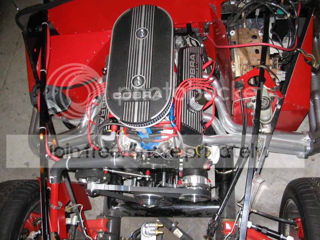 The ..."the bundle-o-snakes showing" I assume that that is just like most factory five "Cobras" and is fake ..just for looks with a single inlet . Wayne's sidepipe looks much cleaner to me but all good fun, enjoy the cars that is what it is all about.