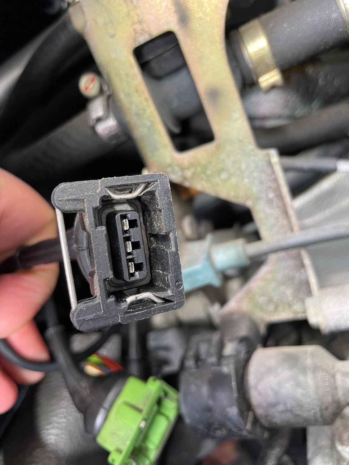On this day I am finding myself at the back of the engine looking at the cable for " the cylinder temp sensor " wanting to test it through measuring of its resistance (when very cold )