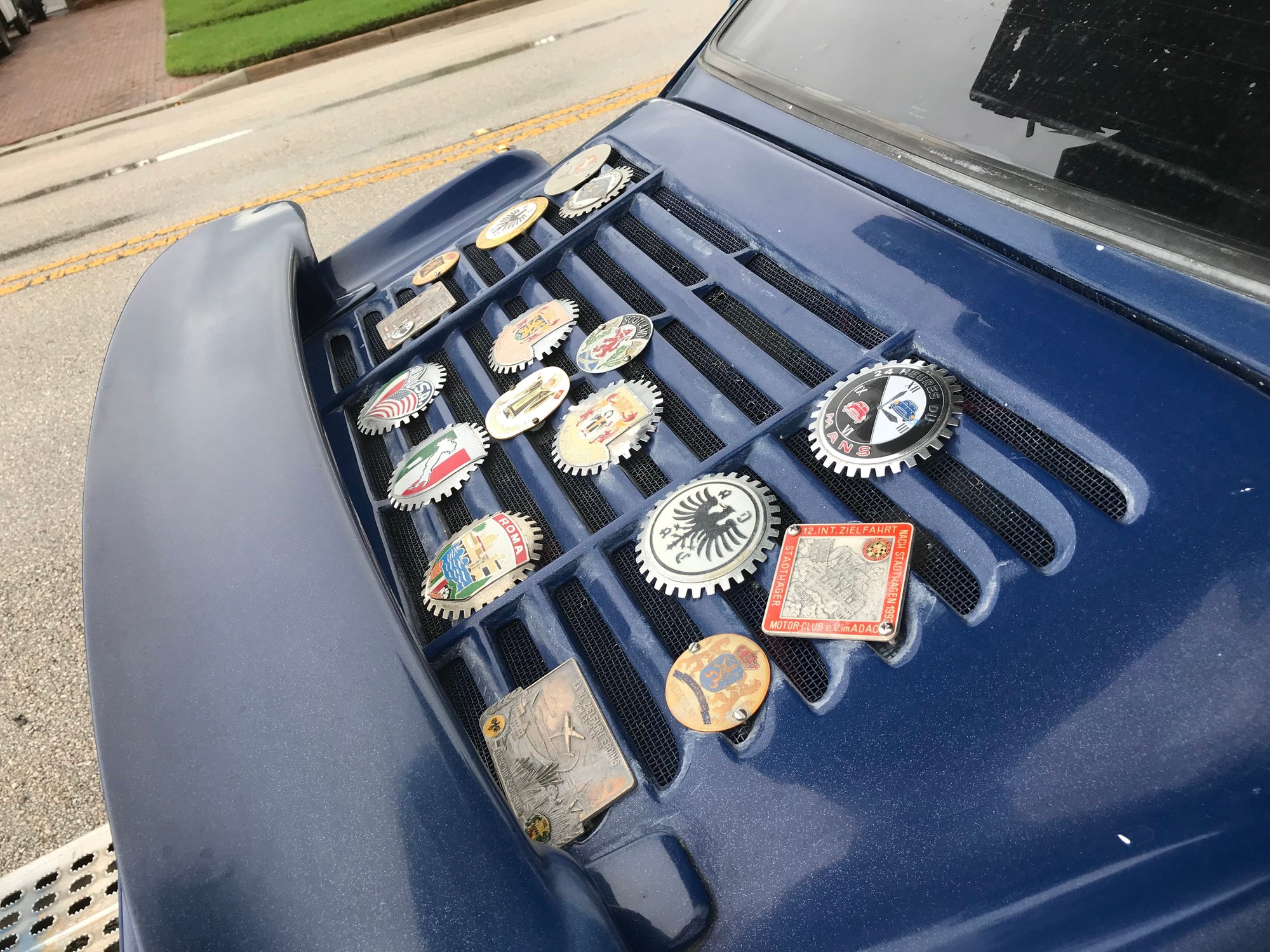 Here's what my grill looks like right now with a mix of PCA badges. I have a PCA National Badge, 2019 Werks Reunion badge, 2009 Porsche Parade Colorado (which still has the original hardware in place), and a 2026 Diablo Region badge: