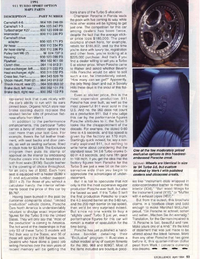 Funny they claim that it had a larger Inter cooler which my understanding wasn't the case. The wing did sit higher so it used a specific set of louvers and surrounds for the IC to close the gap left when using the original Tea tray spoiler. I had both parts I sold with the last known to exist TS wing I had. Does anyone have confirmation that the turbo S2 IC was used? It shows the P3 as the IC which would be from the S2. It is currently the only IC available from Porsche.