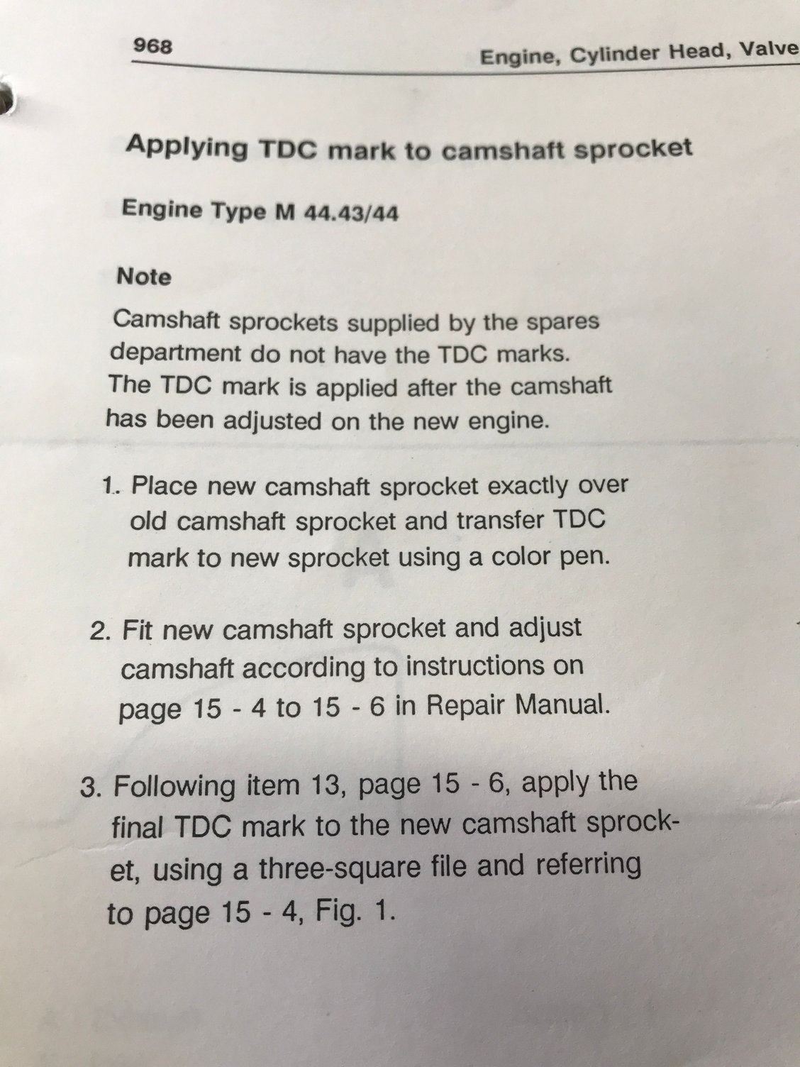 If you install the cams at around 45 deg. BTDC, no pistons are in range of open valves. At this point you rough adjust the cams like the photo in the manual. Once this is done, turning CW to TDC is safe. Just go slow, and if any resistance is felt, you likely have not pre-positioned the cams properly, so stop, turn the crank CCW to get the pistons out of the way, and re-adjust to match photo.
