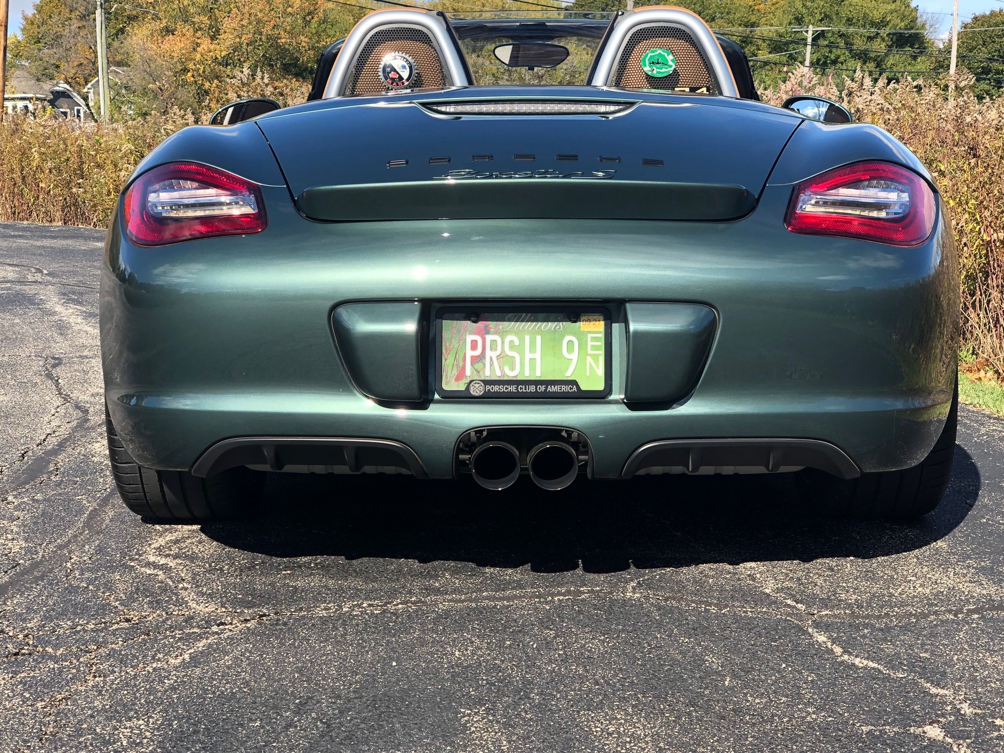 Not a fan of that particular tail. I run a Cayman spoiler on my Boxster and it gives me a happy medium between stock and what your current option does.