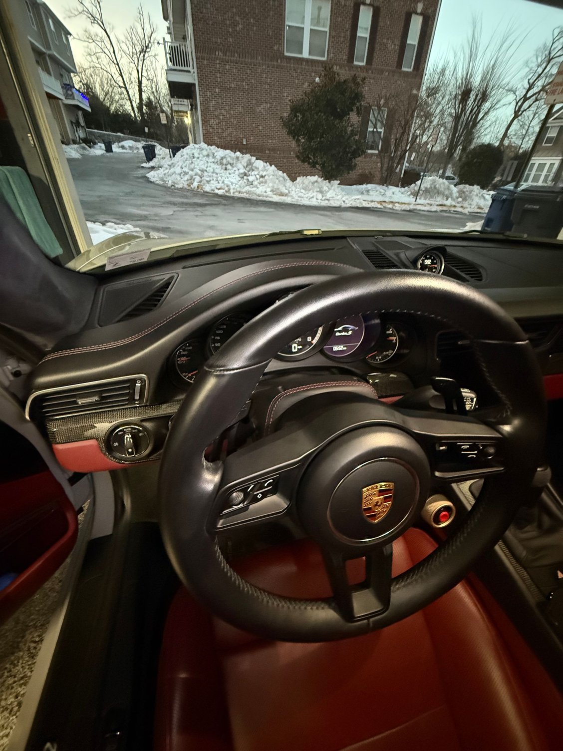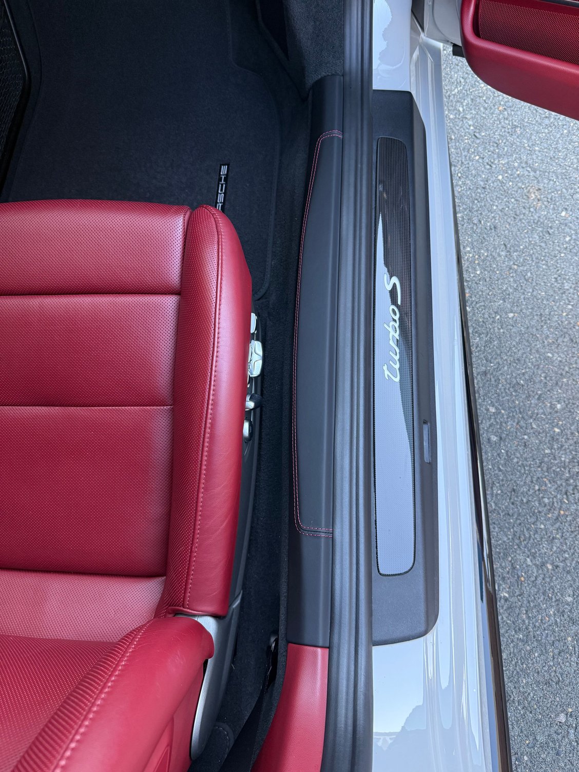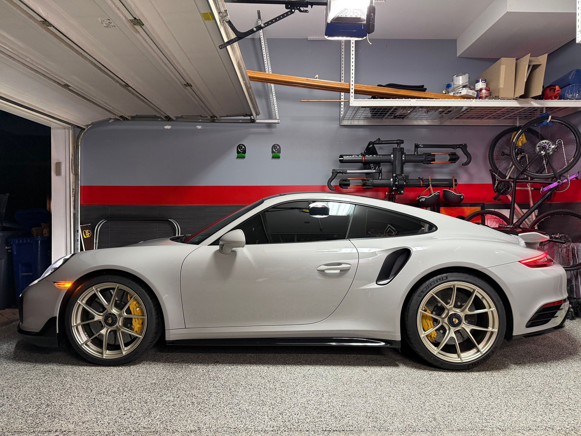 Slowly but surely coming along. Wheels and mps4s mounted ready to be picked up. Painted gt3rs side skirts back from getting painted gloss black. Once I find some time to pick the wheels up and install the skirts back to detail shop for PPF on the skirts. Then back home for me to put the eibachs on. Also ordered OEM black leather with deviated Bordeaux stitching inner door sills and center dash sport chrono cover. That should be all for the leather wrapped pieces i want.