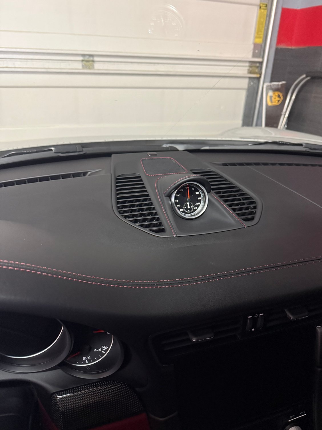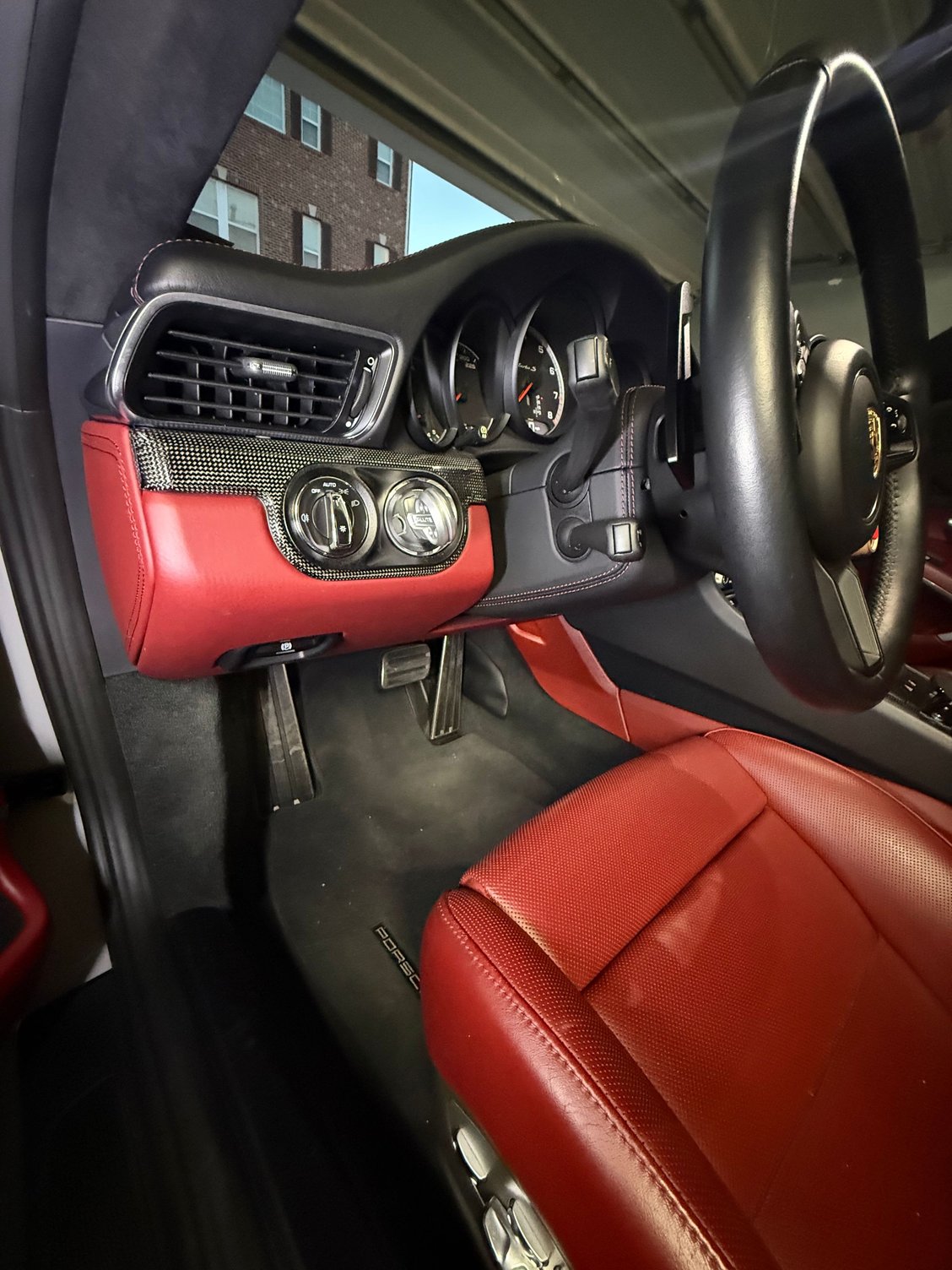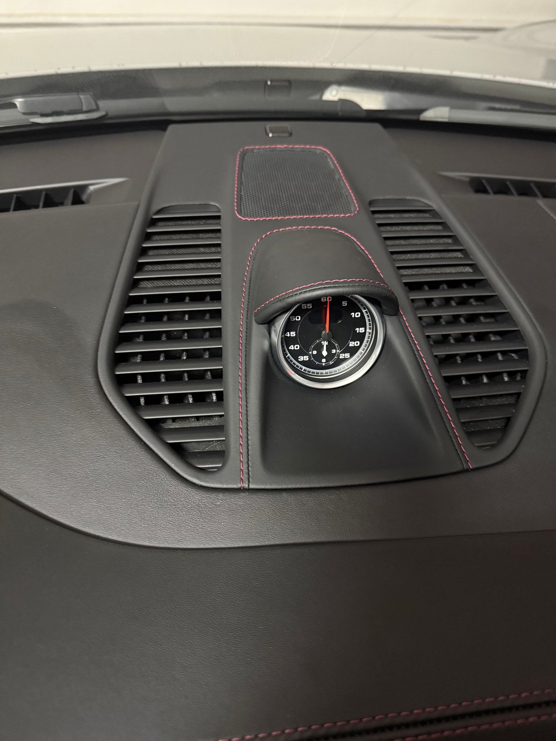 sport chrono cover wrapped in black Napa leather with deviated Bordeaux stitching. Still waiting on inner door sills in leather.