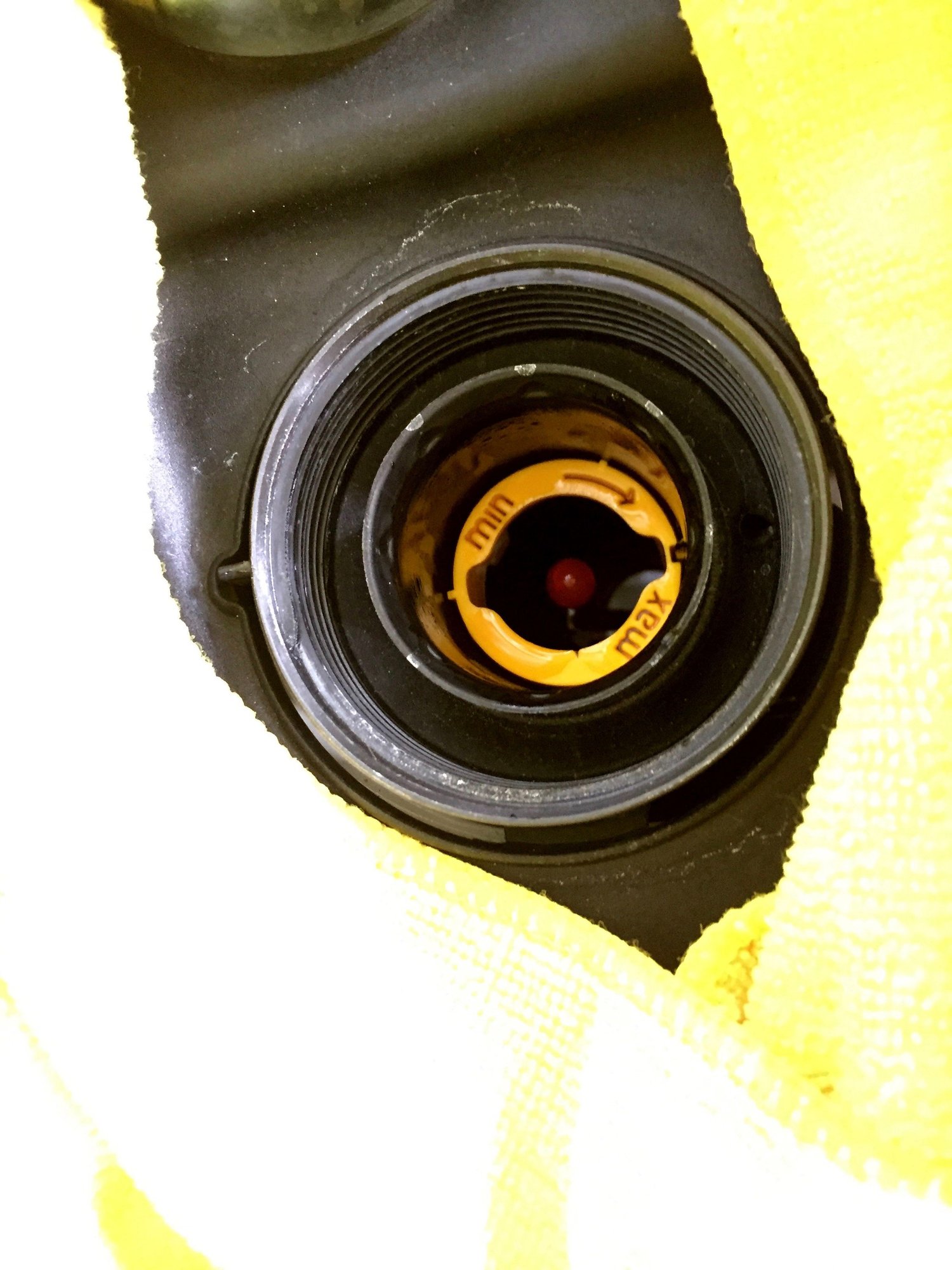 So, If the red ball is in the “Max” notch you are 100% full & if in the “Min” notch you need to add coolant & probably had a MFD warning message.
