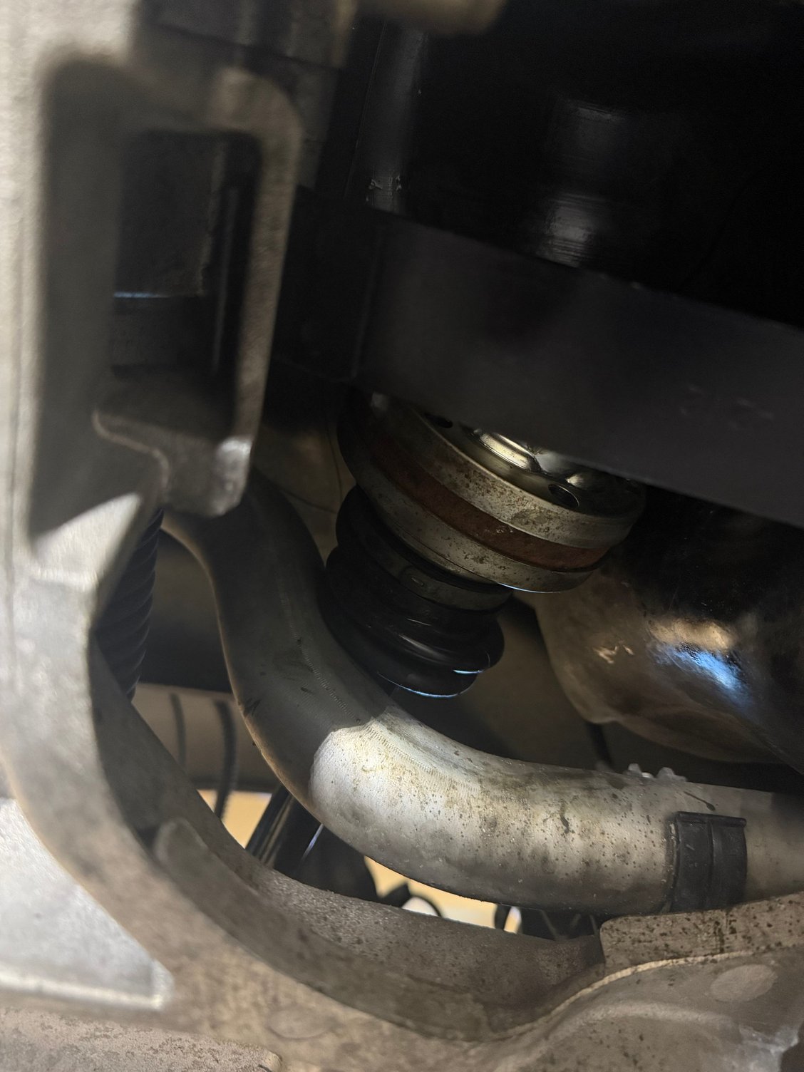 Don't see enough room here to slide inner CV joint past the coolant lines on both passenger and driver. Any suggestions before I move to dropping front final drive?