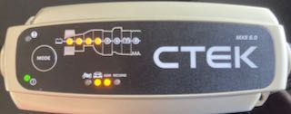 Today being beautiful here (78 degrees) I took the opportunity to drive with the top down for about 50 or so miles - maybe 1 1/2 hours of driving. The vehicle was reporting a charge voltage of 14.5. When I got home, I took the opportunity to change how the CTEK is connected - from using the 12V plug on the PASS side (PITA) to hooking to the battery + and ground. When I started the CTEK, the car voltage was about 12.4 which, for an AGM, means that that battery was about 1/2 charged.