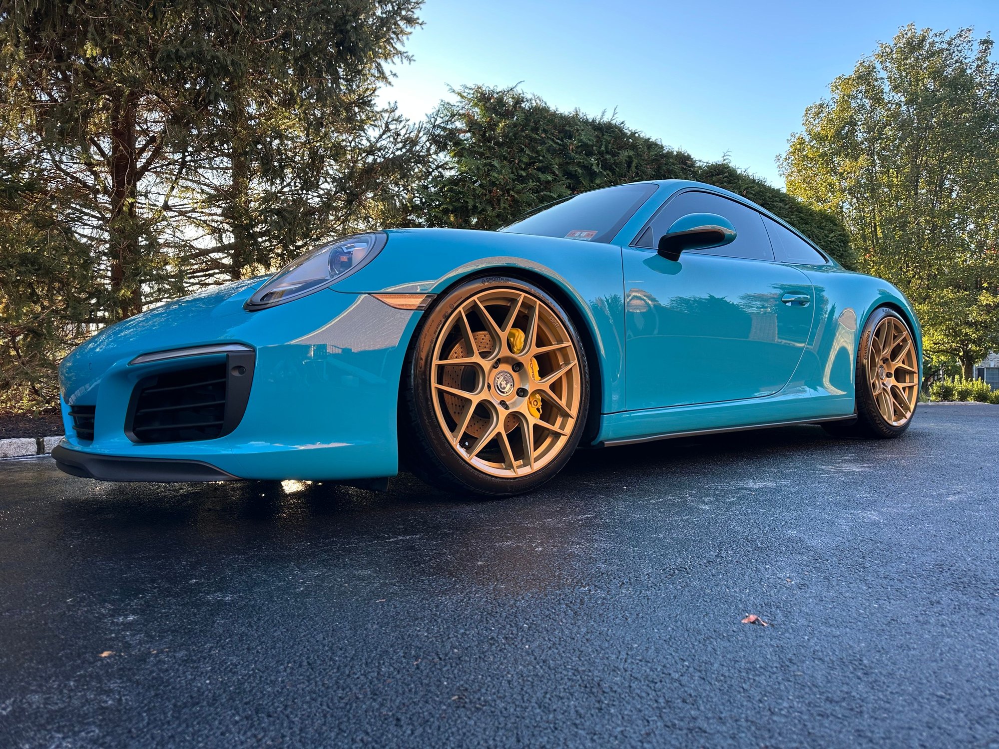 You already have a fantastic color combo with the gold rims on (what I think it is) Miami blue, and these HREs look fantastic. Do yourself a favor. Stop browsing for rims