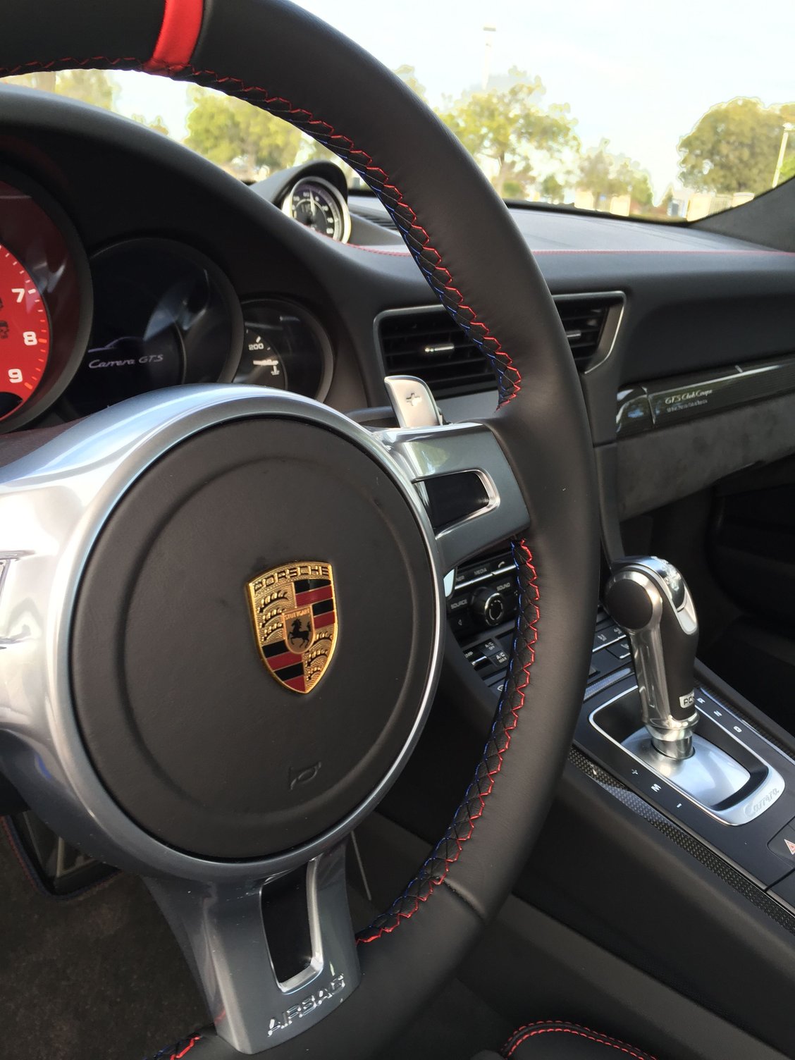 actually , I was horrified that the detailer at the dealership had installed these optional ones ahead of time ( blame me for not instructing them beforehand ) , with the regular GTS model red stitch/ red logo ones still sealed in their bag ...I then decided to take the above pic before swapping them out but have decided to keep these in place until after next week's annual GGR PCA banquet , keeping the dealers service carpet " protector" in place until then .