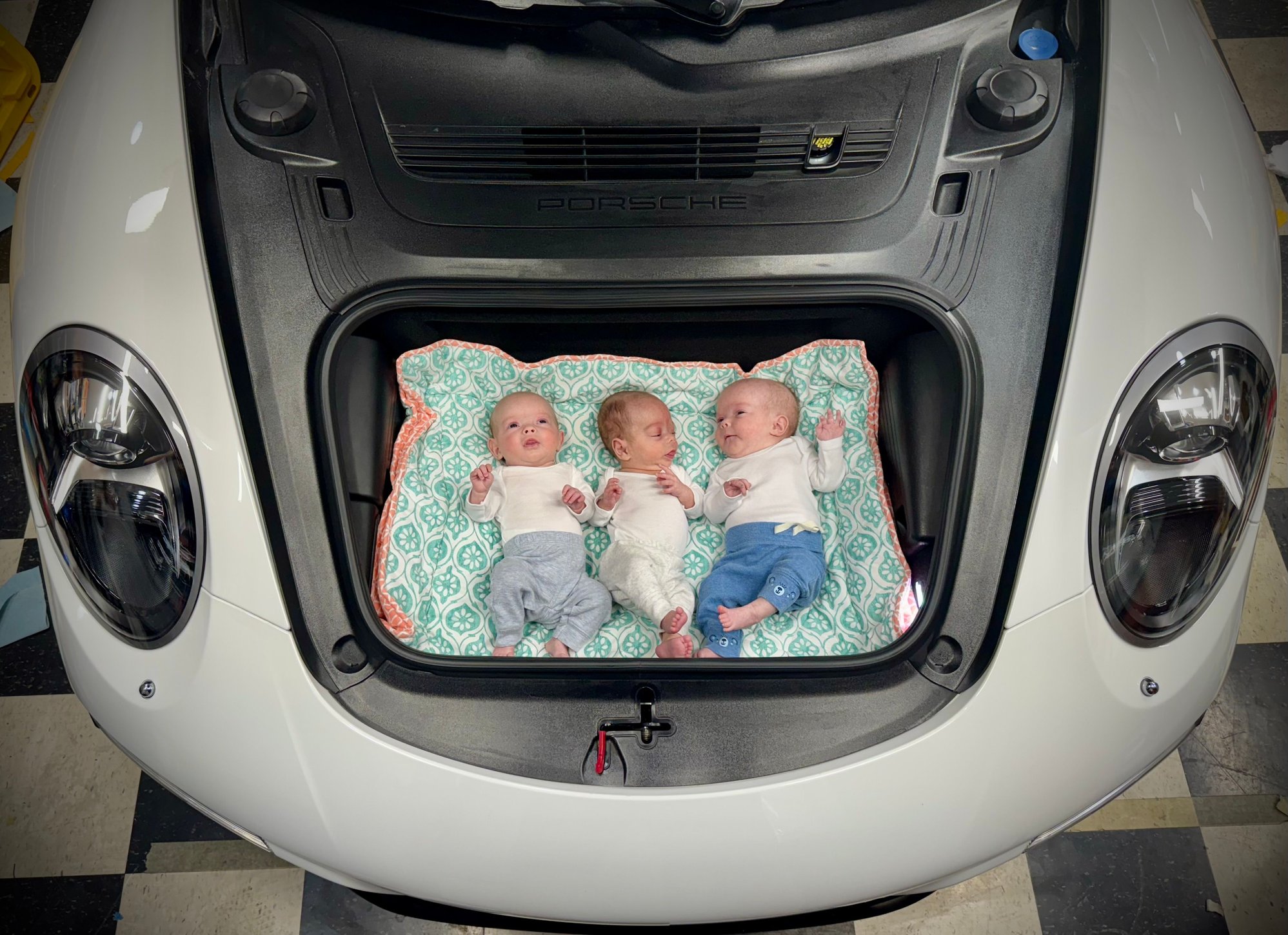nice frunk quilt so i can keep an eye on the little ones while I'm in the garage.