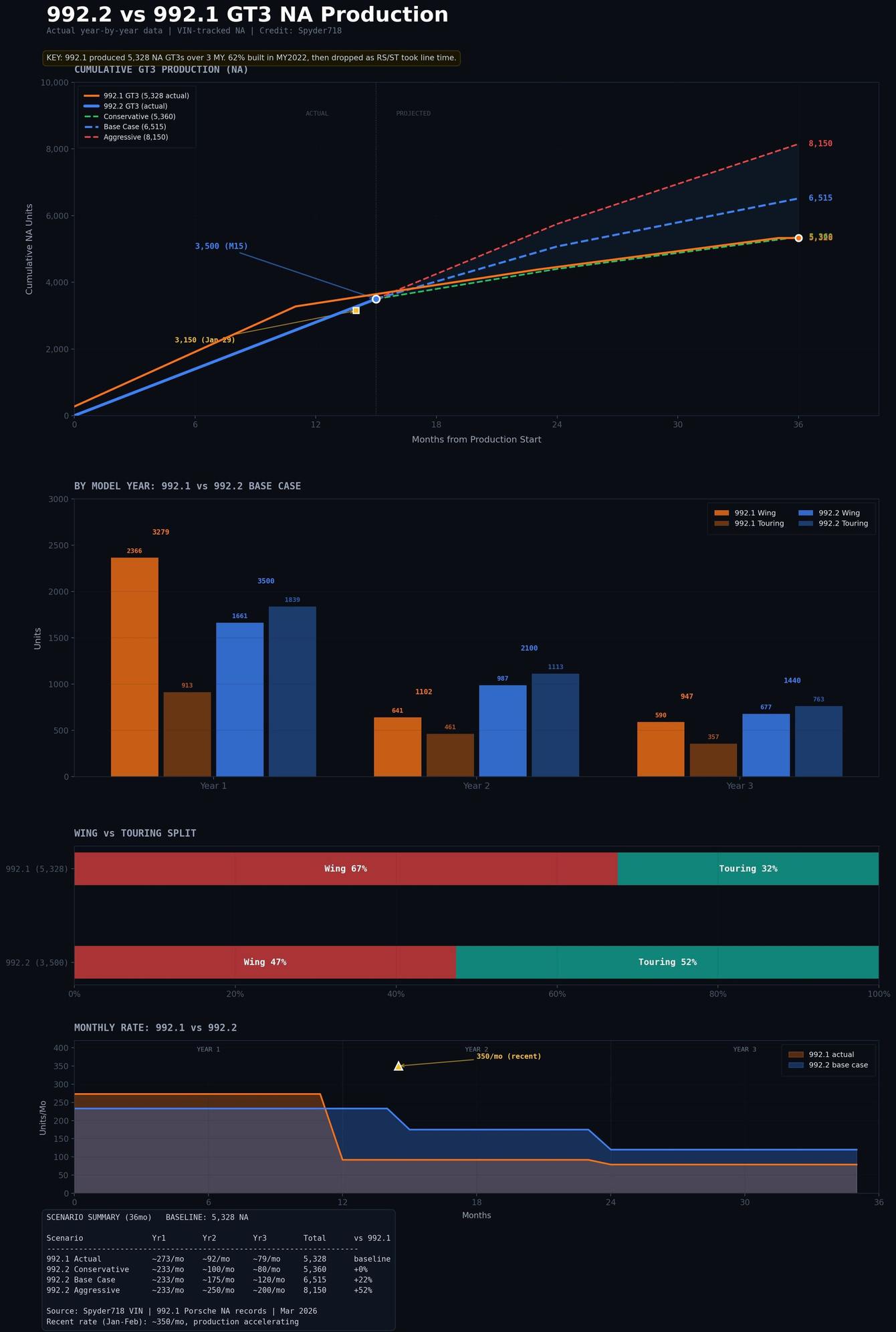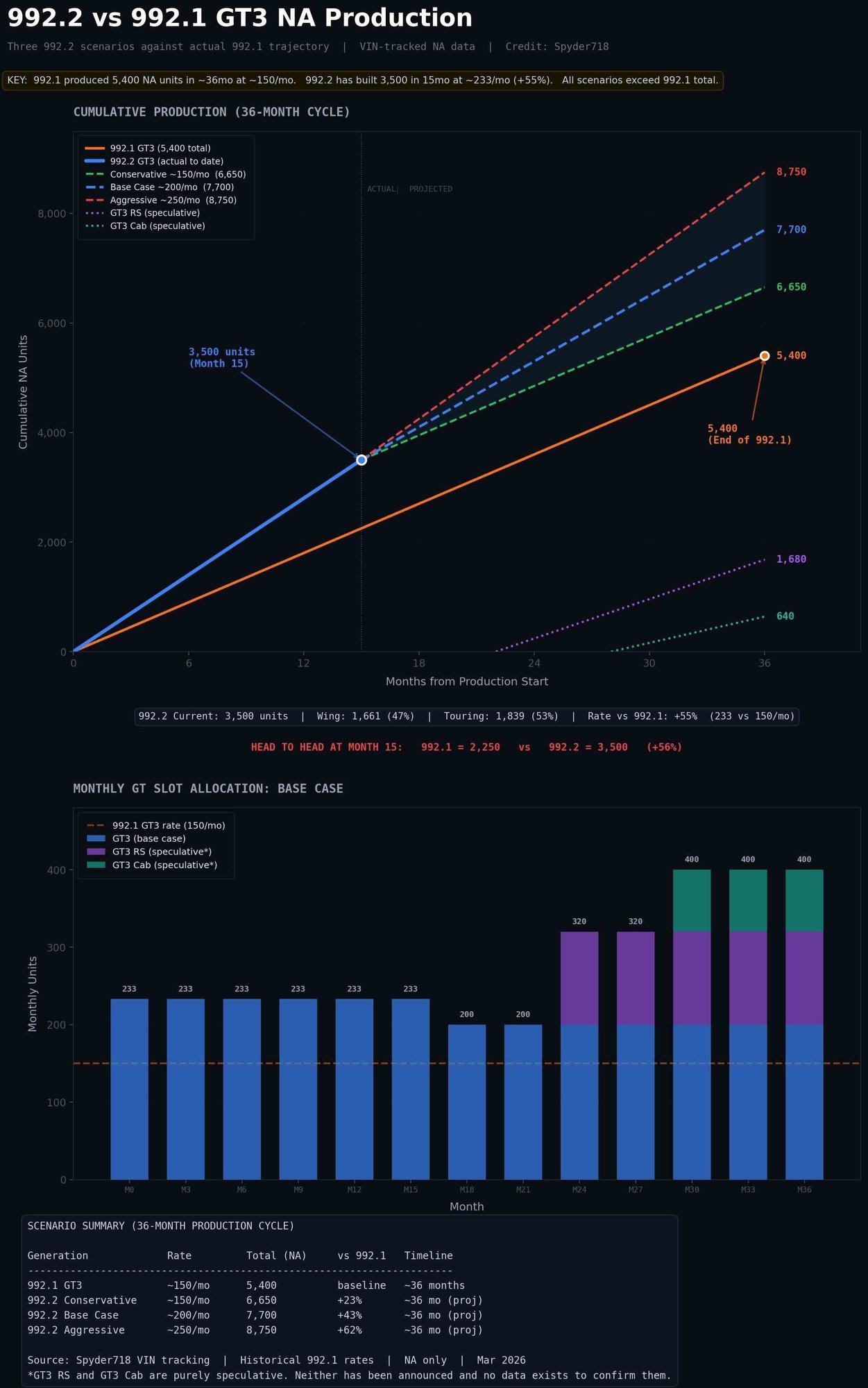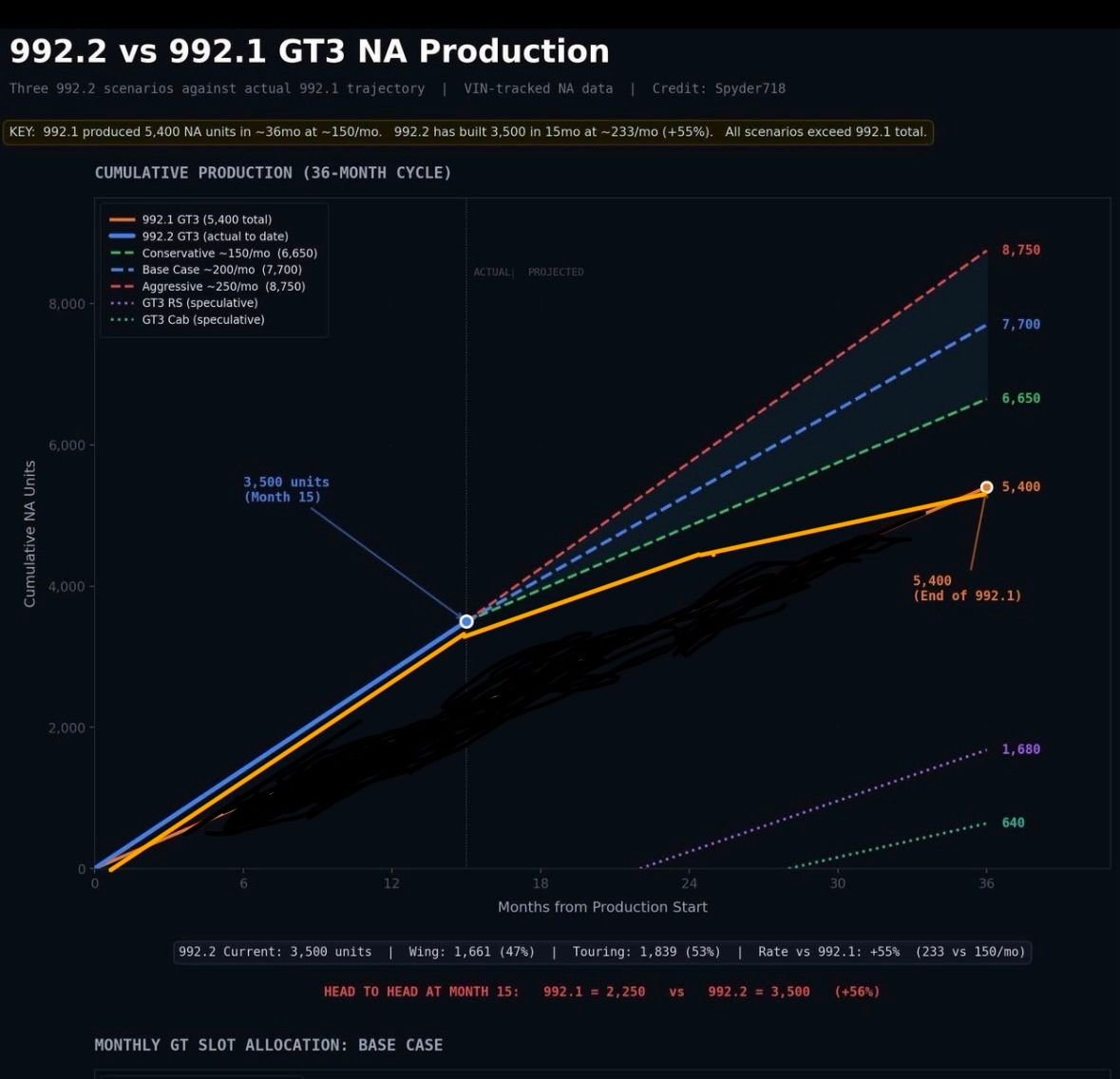 You literally have the actual data to show the change in the 992.1 production by year. Why does the orange line go in a perfectly straight line over 36 months? Re-adjust the chart to show what the actual production numbers of the 992.1 GT3 looked like over its entire production run. Or would that not really fit your narrative?