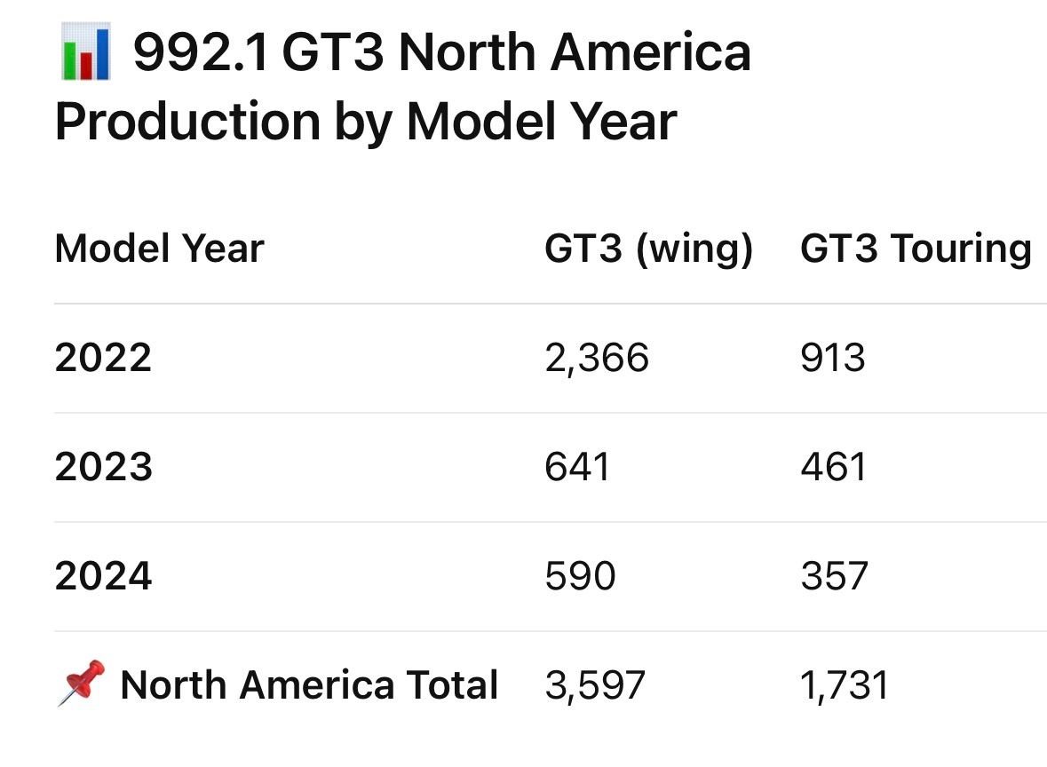 He should plot the 992.1 GT3 production by year with these numbers, and the chart will look a bit different…