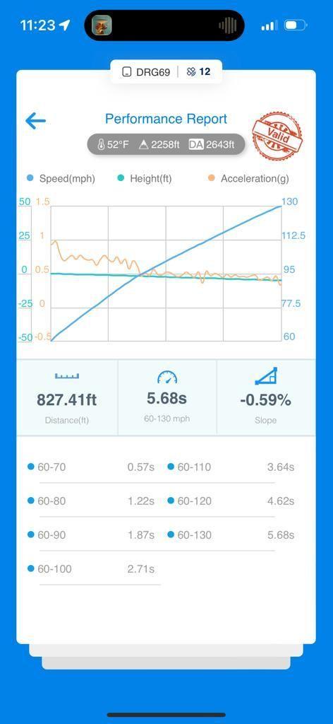 The DA finally came down here too so I did some 60-130 hits to see if there would be an improvement. 60-130 came down a bit, surprised me some. I’ve been running a different pump gas 93 shell, so far it seems better than 94 here.