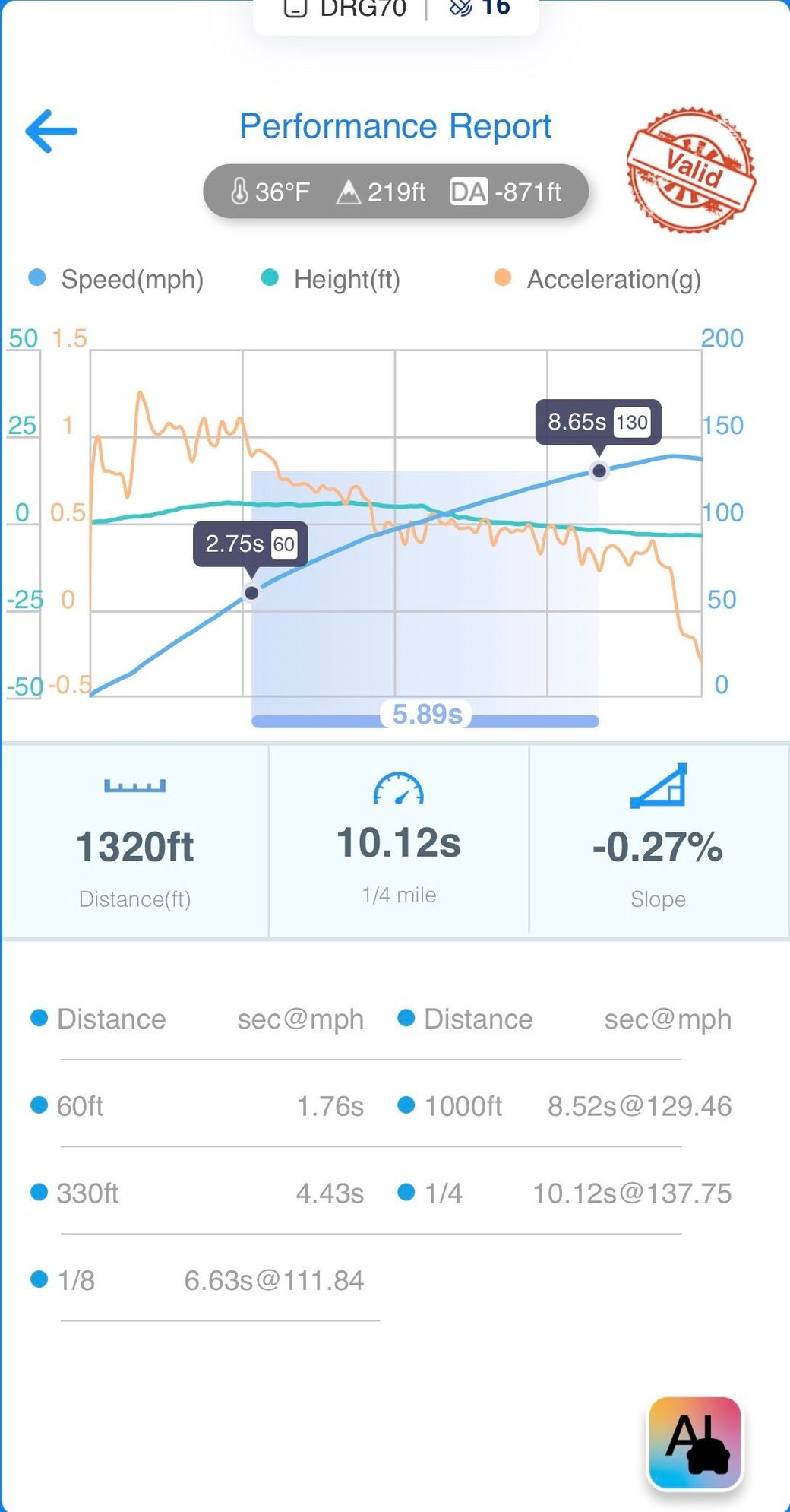 Vehicle was not on Dyno mode so that could have affected things as well.