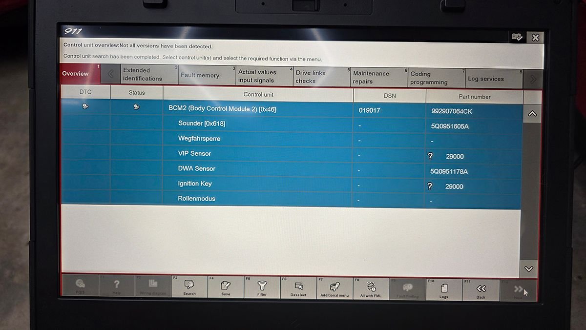 5) In your PIWIS 3, your ignition key is not seen or no data received (code 29000)
