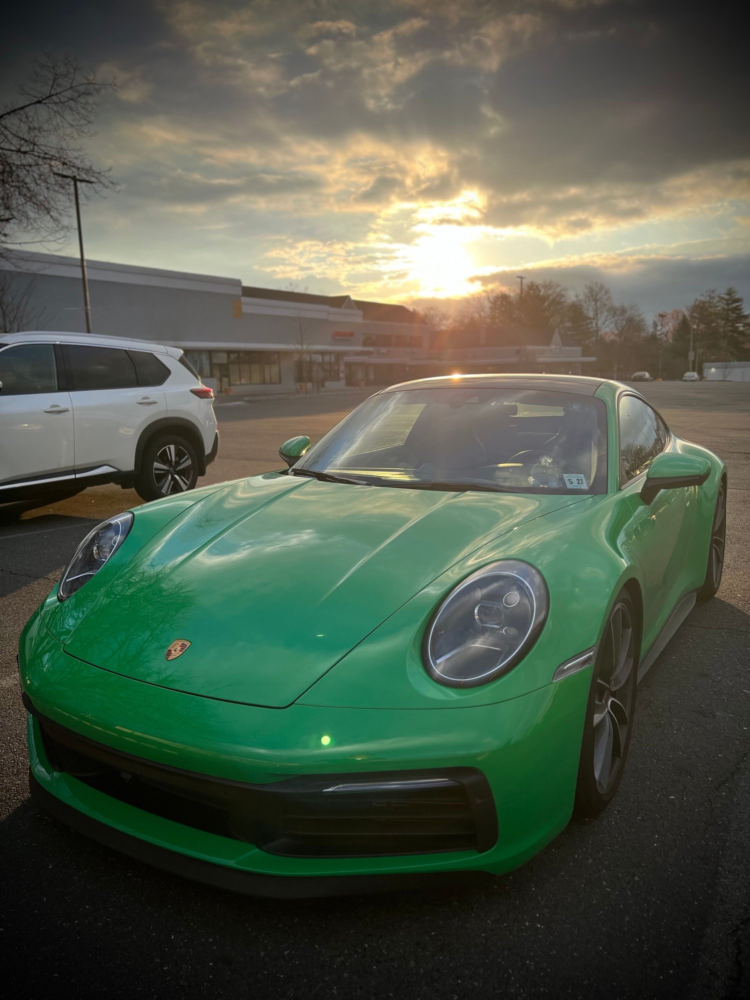 Just got the car back today and think the ride height is about perfect. Lowered 7/8" all around. Mods so far: MEngineering Stage 2, Europipe cats/akra exhaust, GT3 side skirts, Moshammer rear diffuser, OEM carbon fiber mirror caps, custom motorsport stripes in lizard green to match interior stitching. On order: Litespeed RS5RR wheels, AP Racing BBK and rear discs and Moshammer ducktail and front spoiler. Possible mod - OEM GTS turbos. Really pleased with everything so far!