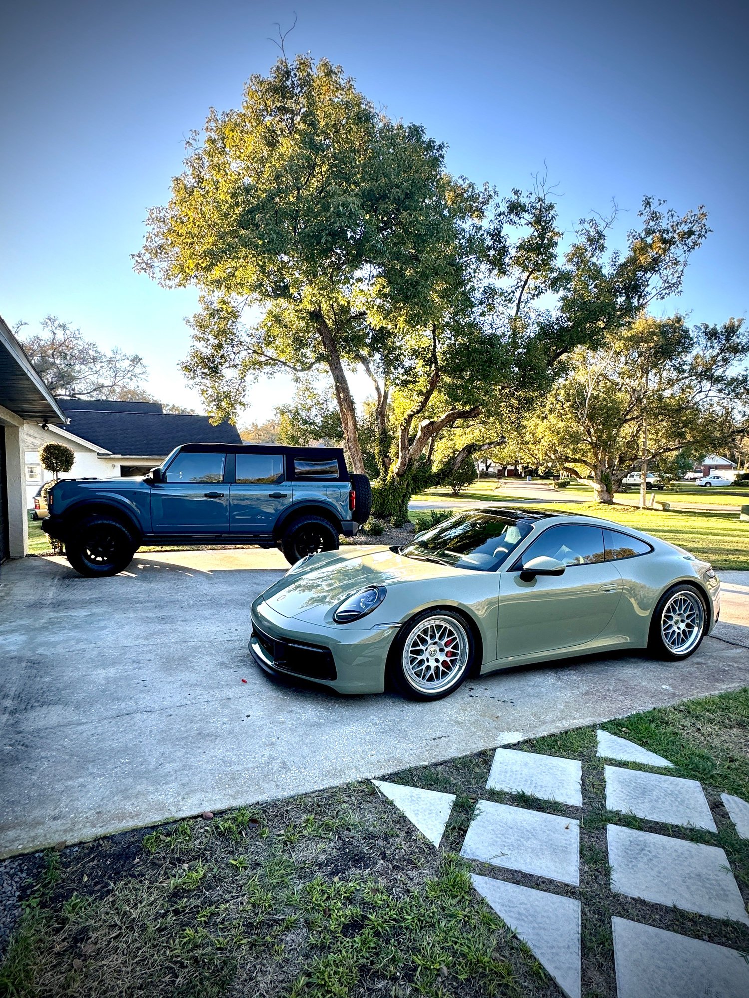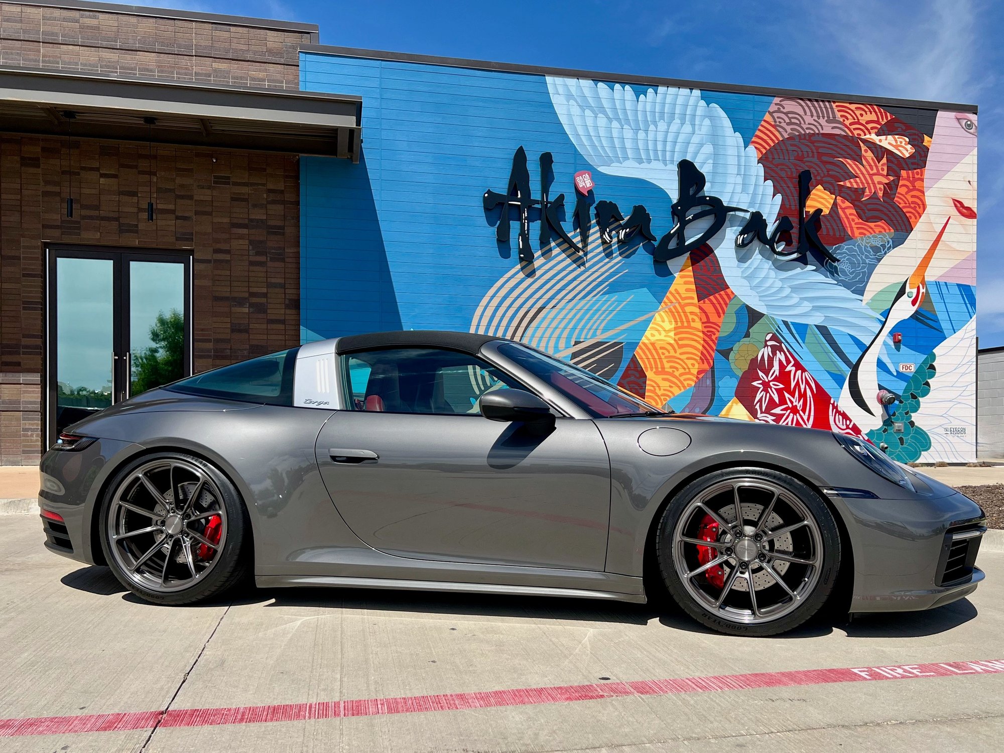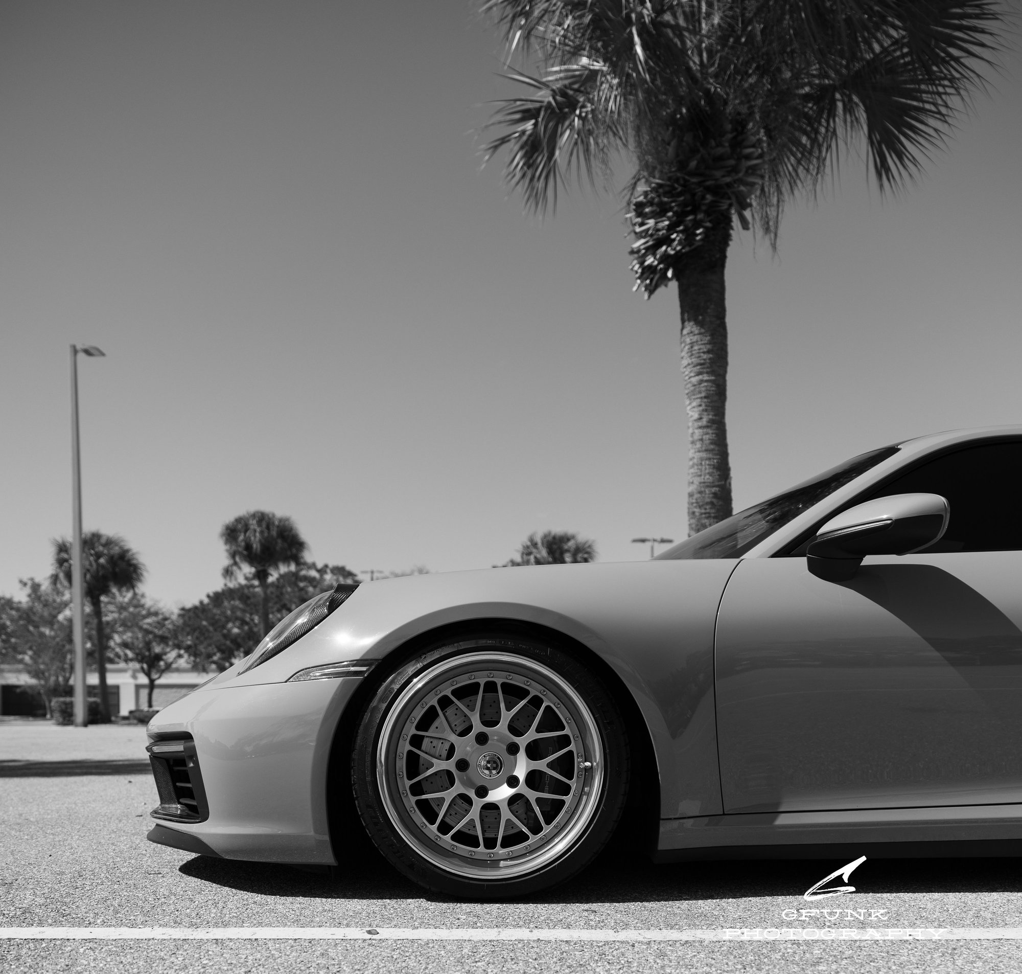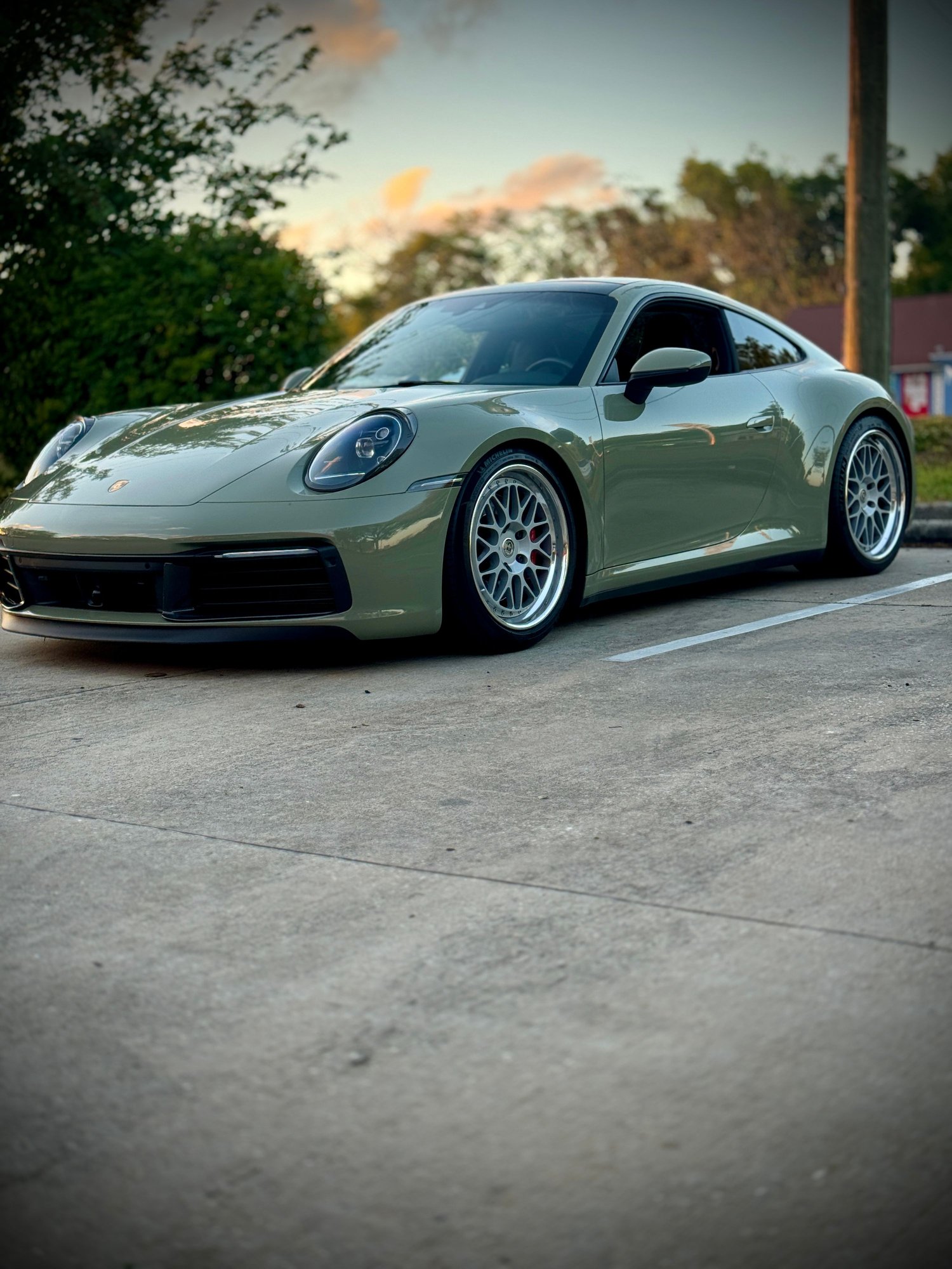 Just got the car back today and think the ride height is about perfect. Lowered 7/8" all around. Mods so far: MEngineering Stage 2, Europipe cats/akra exhaust, GT3 side skirts, Moshammer rear diffuser, OEM carbon fiber mirror caps, custom motorsport stripes in lizard green to match interior stitching. On order: Litespeed RS5RR wheels, AP Racing BBK and rear discs and Moshammer ducktail and front spoiler. Possible mod - OEM GTS turbos. Really pleased with everything so far!