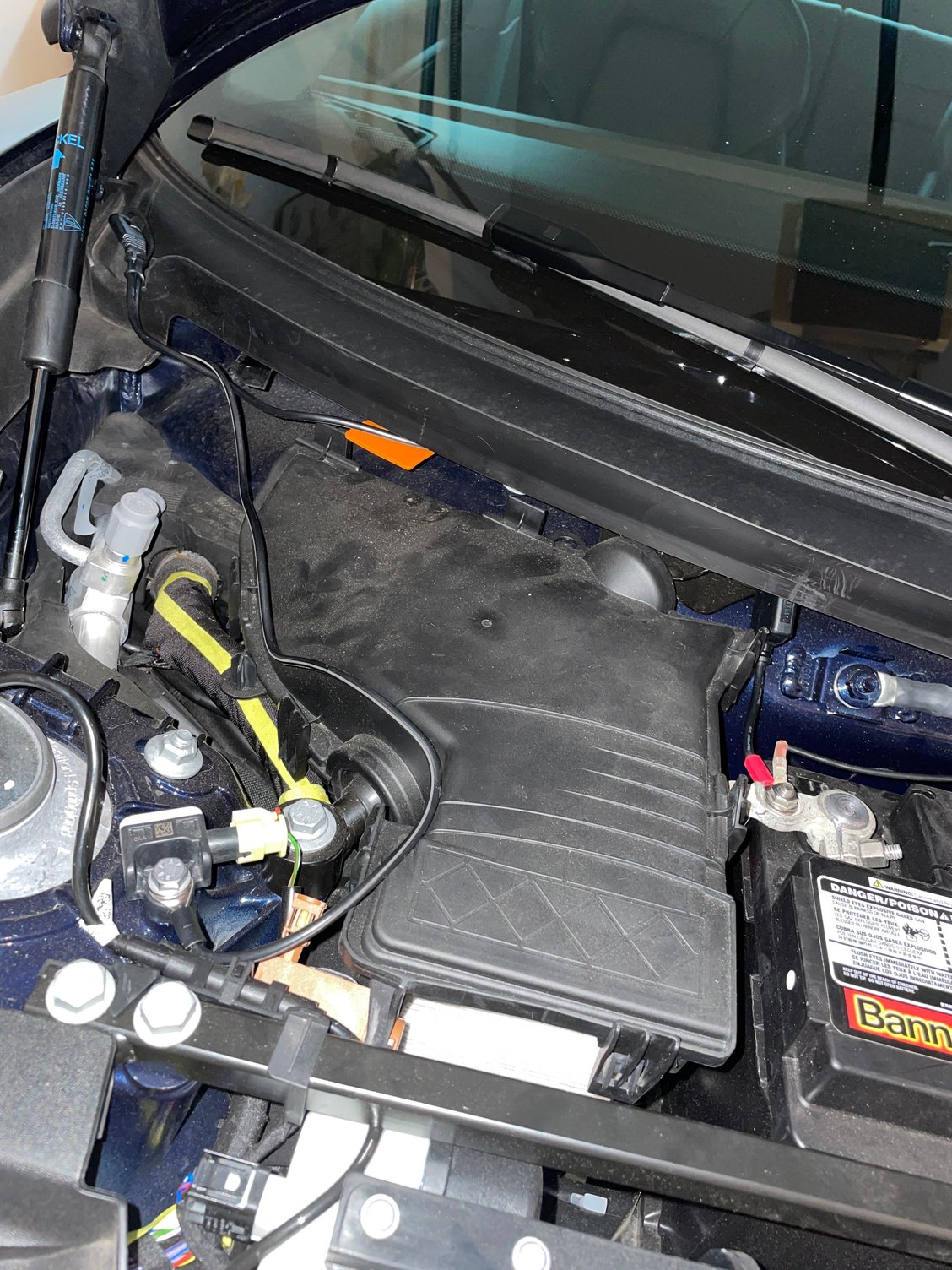 It pained me to mess up the pretty blue paint on the nut, but that’s what touch up paint is for. In addition to following the manual, the Noco charging terminal rings aren’t open on one end, like this —-C if you will. The nut on the negative terminal post doesn’t come off, so it would have forced me to cut a notch in the Noco terminal rings if I wanted to connect to the battery directly.