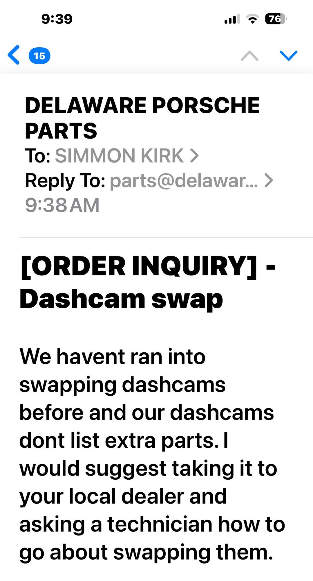 I ordered the prewire for the factory dash cam and then I saw some of the installs and decided that the mounting and cam were too intrusive. It looked at the factory mounting instructions any they mount the cam low and very much in what I feel to be obstructing the windshield. The mounting position along with the 'feature' set of the Porsche dash gam makes it a no-go. I have another plan in place -> Garmin 67W.