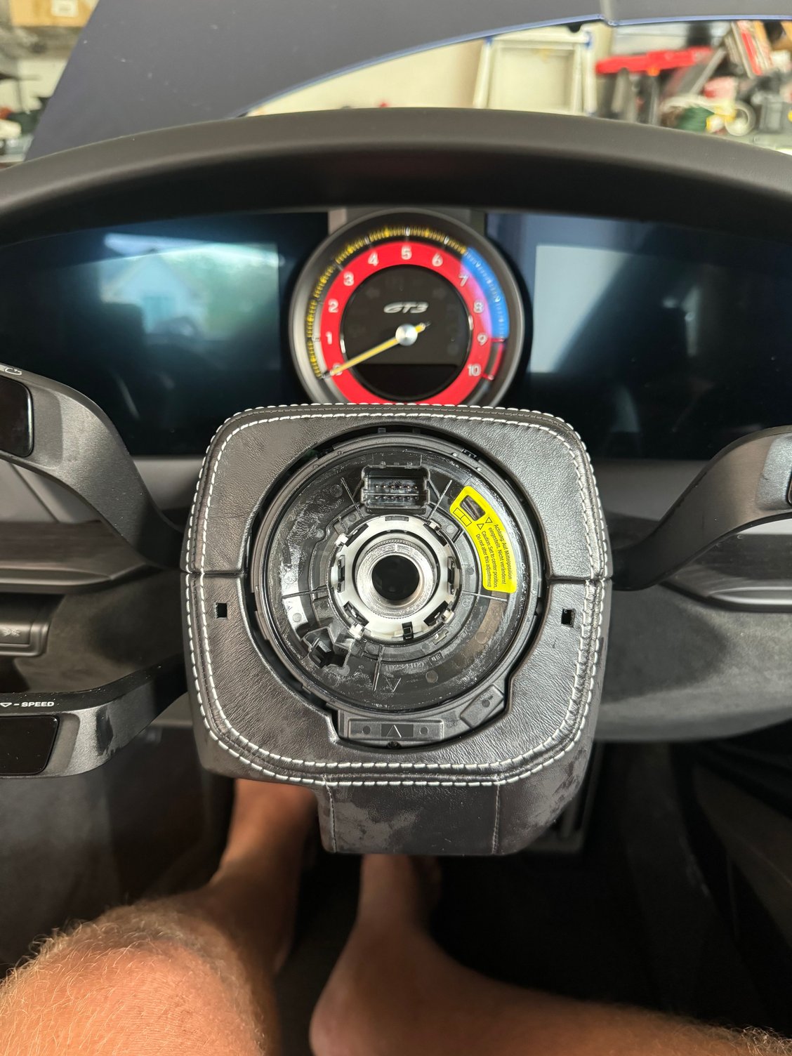 Guys this is a crap first post, but I just bought my 992 gt3 in March and bought some gt3rs magnesium paddles and decided today that I should install them. Well I just removed the steering wheel and the plastic clip behind the wheel came with it exposing the hub wiring which is full of lithium grease.