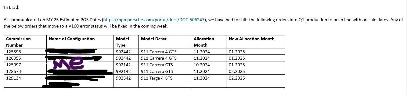 I called my SA today, he heard that some GTS builds are getting postponed, however he said that my GTS is still on schedule for October build, but there no set date yet. I'm keeping my fingers crossed.