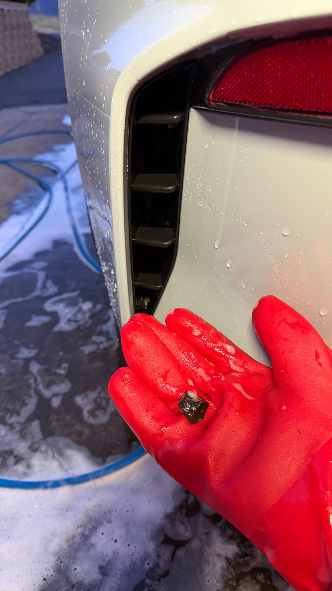New winner for largest rock lodged in the GT3 vents. It stuck in the lowest, smallest, V-shaped opening. So you can just imagine the # and size of rocks the tires fire thru the bigger openings at the poor folks behind us.