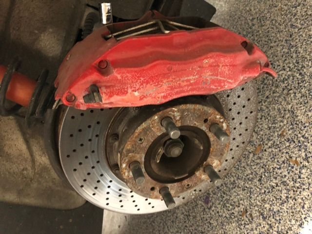 Car is a 95 993 C2. Previous owner installed big reds. They've seen better days - got some ripped boots and delaminating pads, as well as grooved rotors.