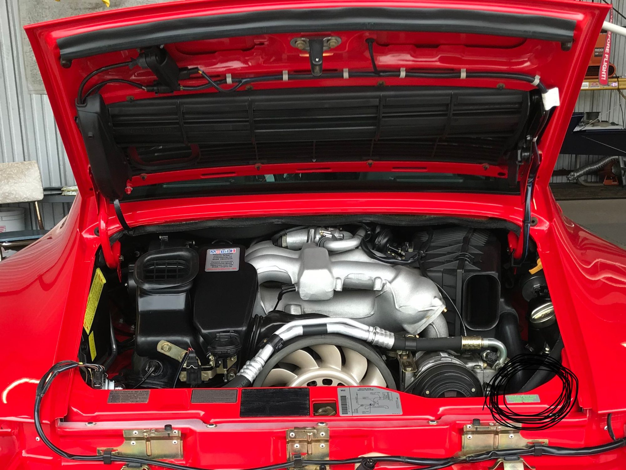 Must haves for the 993? Owners manual set, with the service booklet, dealer listing, radio instructions, leather binder, radio code card. Also the air compressor, complete tool kit,( if your car has factory wheel locks then the little "L" shaped hook to remove the covers). Then if you look in the accessory booklets, the Boutique booklets, and ads from the PCA Panorama of the late 90's you will find lots of stuff being sold by Porsche. Such as the original black small first aid kit and warning triangle (both not original to US delivered cars, but were dealer options), Mobil 1 oil bag, original key fob, Porsche touch up paint stick, cassette tape cleaning kit, VDO Tire Gauge, factory issued sales brochures, color sample book. To help prove the originality you need: Certificate of Authenticity, or the more recent offering Classic Technical Certificate, or at least nicely printed out list from the decoded VIN with options that match the stickers under the frunk and in the service book. Maybe the Porsche cleaning kit, luggage by Porsche Design, from the 90's or what ever would add to the "fu fu" for the car. When a bunch have all very similar cars it comes down to who has the most and rarest stuff. So start collecting now???