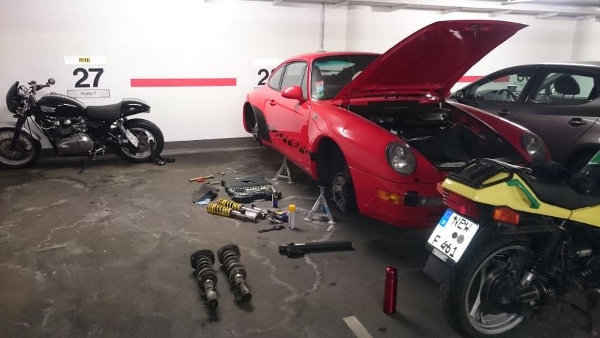 Did all that suspension work in a public parking garage?
