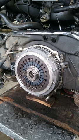 Sachs Lightweight Clutch + Flywheel installation went pretty smoothly. I was due for an oil change so that was an added benefit. My mechanic dropped the engine and transmission, pulled the old clutch, and black dust rained down when it came out.