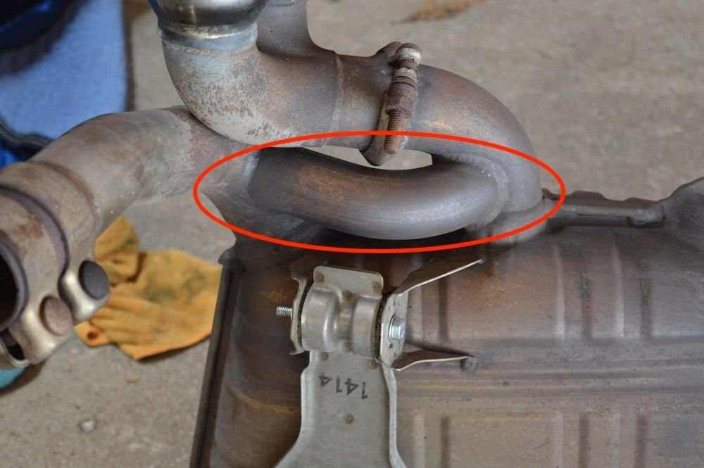 There are a few versions of the welded in inlet/outlet cross pipe. Fister locates and TIG welds the cross-pipe on the engine side of the muffler just above the mounting bracket and many local shops locate it on outside/bumper cover side of the muffler and MIG weld it. Locating it on the bumper cover side places the cross pipe very close to the bumper cover (heat) however there is insulation inside the bumper cover.