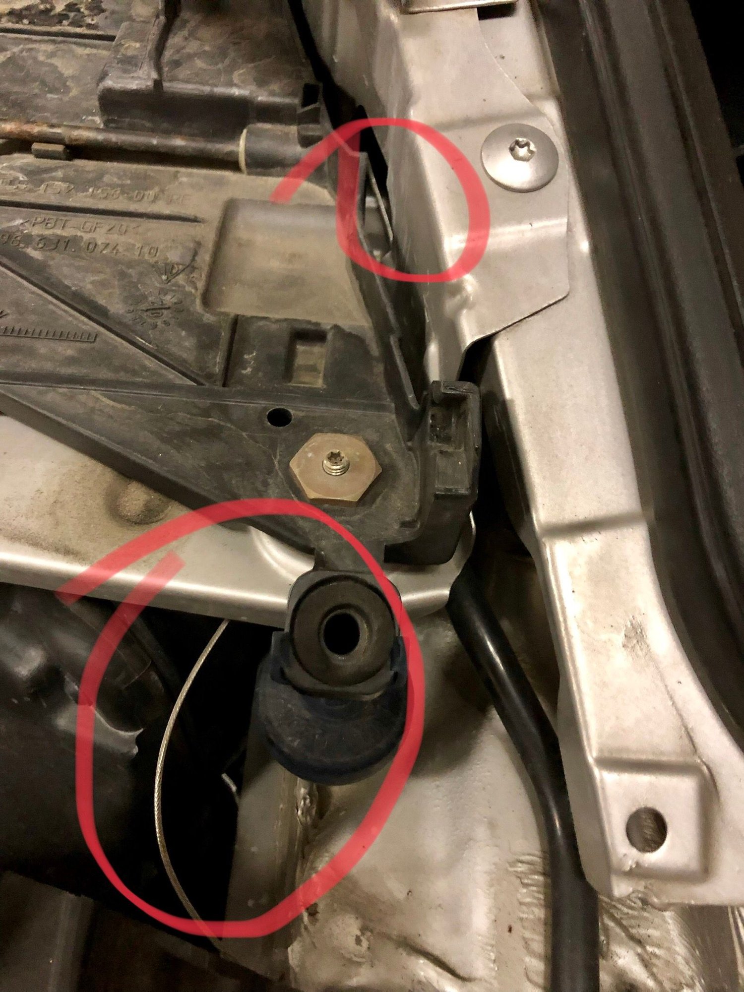 So when removing the front bumper to clean the radiators I noticed this cable after removing the passenger side headlight. It runs to the frunk release mechanism. The looped end is feed up to a location that I don’t think can be accessed without the headlight removed. Bottom circle shows the cable running aft and the top circle is the location of the loop. Any ideas? Thanks in advance.