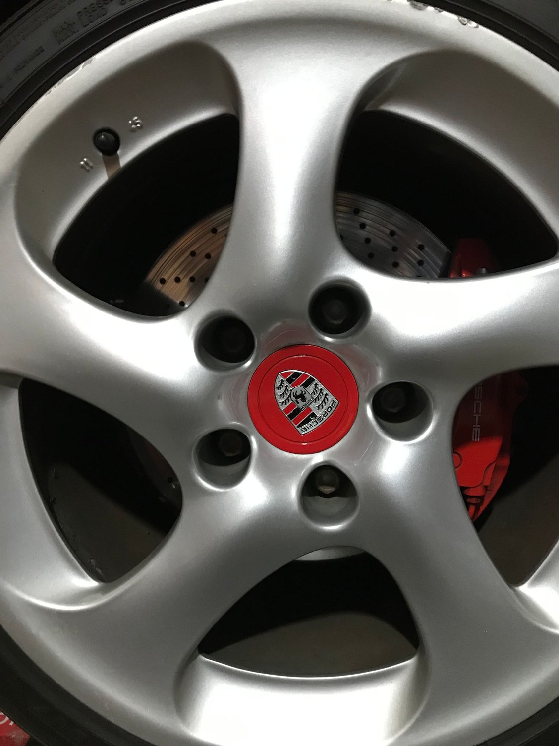 I figured I would mix it up and paint the center caps to match the body color and the badge to match the silver rim. I figured I could find a transparent sticker to go over badge. No luck. Mentioned to daughter the problem and she said she would take care of it. A little red and black paint and here we are. Not sure where she gets the steady hands from.