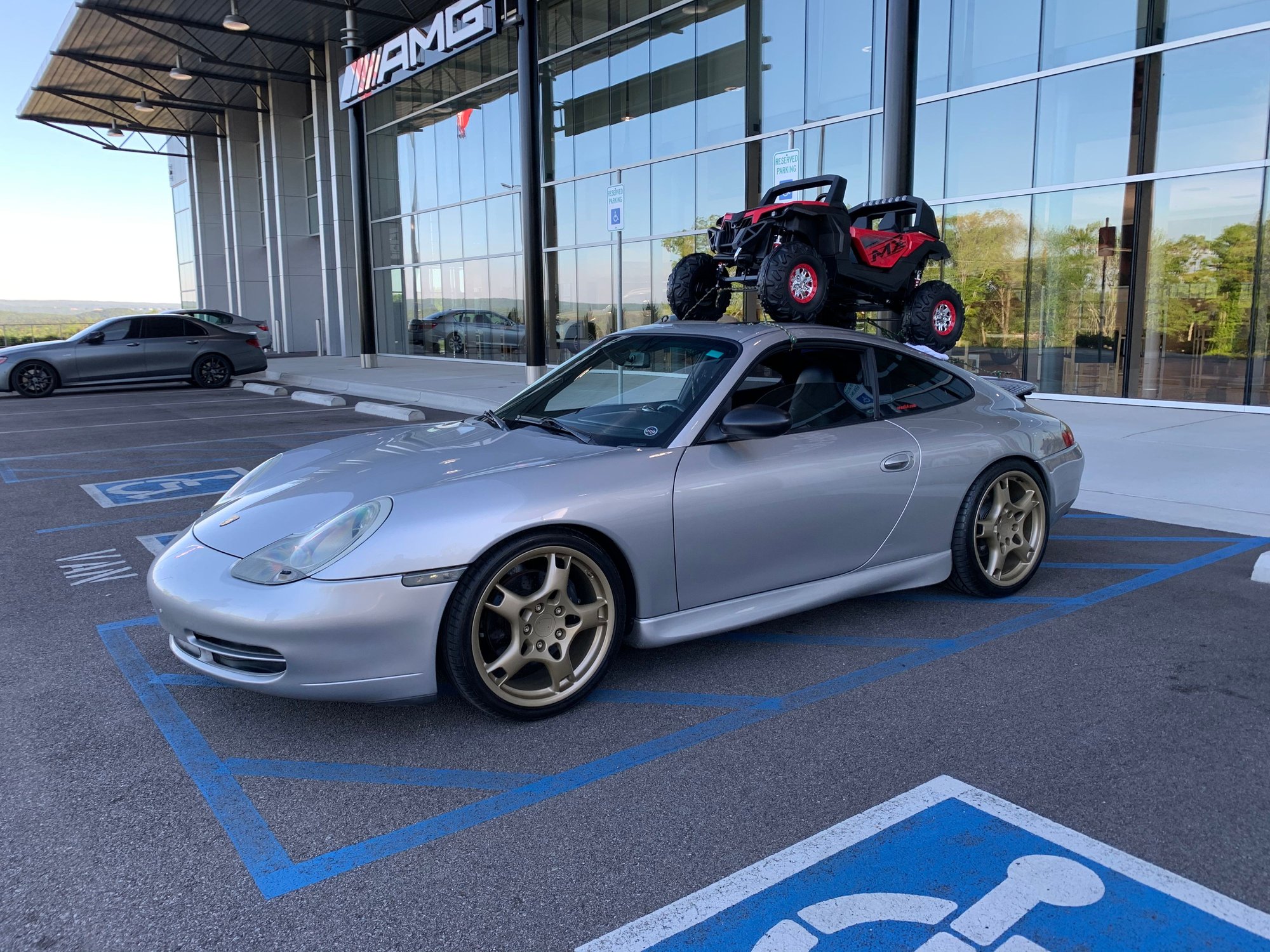 Oh, Nick! So much deliciously wrong going on in your photo. Parked at the Merc dealer, between two handicapped spots, while you’re stealing a baby G-wagon? Props, sir!