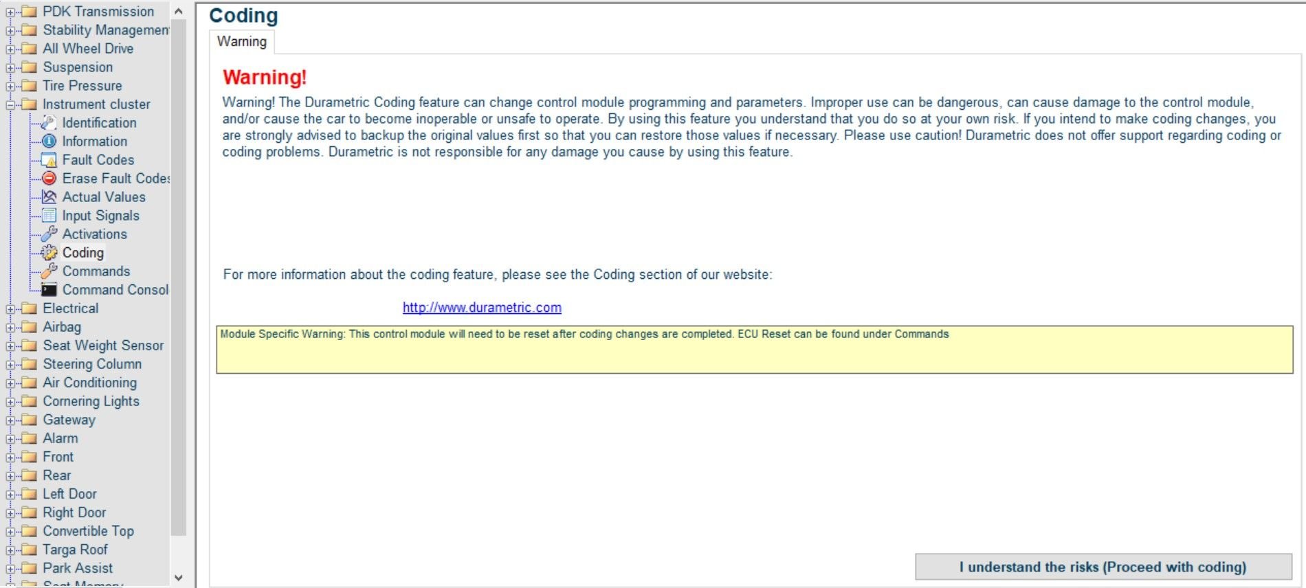 Yeah, Instrument Custer has this additional requirement. When it opens the main page on the right where you click to go to coding there is a text box that says that ECU needs to be reset