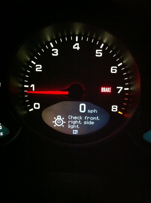 After about 35 minutes the "Check front right side light" warning came on for a very brief time. As before, the light didn't flicker or fail--it's simply the voltage resistance delta that is triggering the warning system to put up a warning. During my 400 mile trek that narrative warning occurred only one more time. The majority of the errors that it triggered manifested themselves as just the red warning exclamation point--that also would self clear in a few seconds.