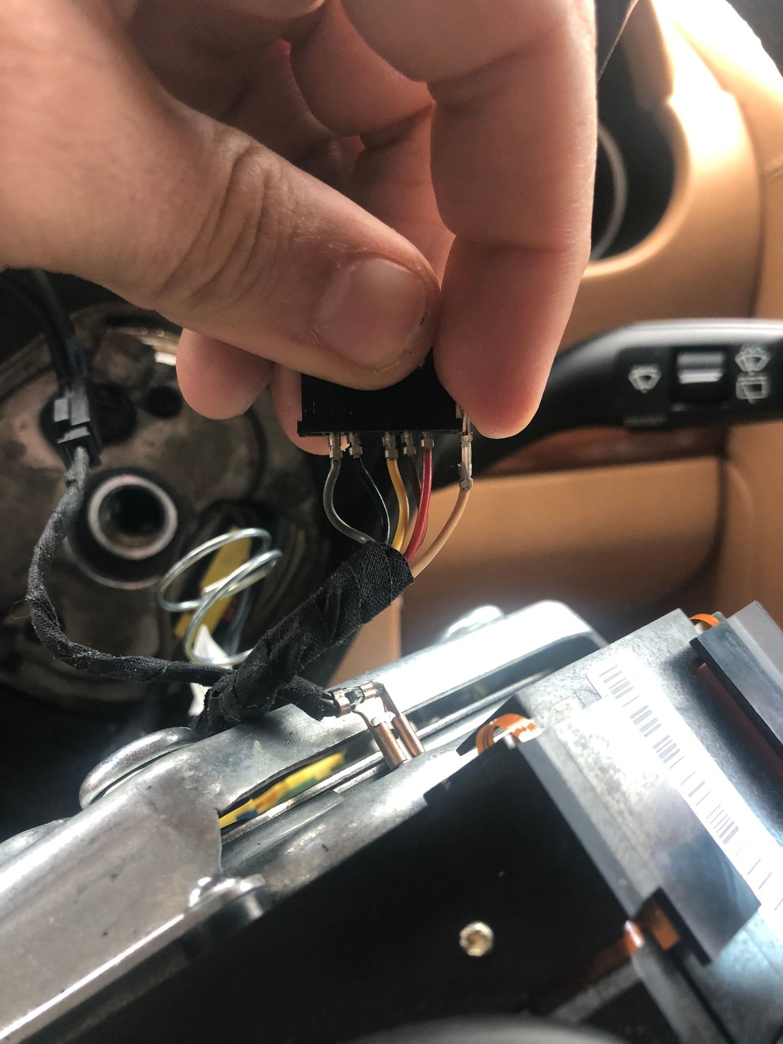 The paddles I purchase had two leads from each paddle that were the same color (green) for both wires, not the black and blue/yellow from others shots. Additionally, my wiring harness within the wheel includes black, grey, brown, yellow,white, red. A voltmeter showed 12 VDC on the grey.