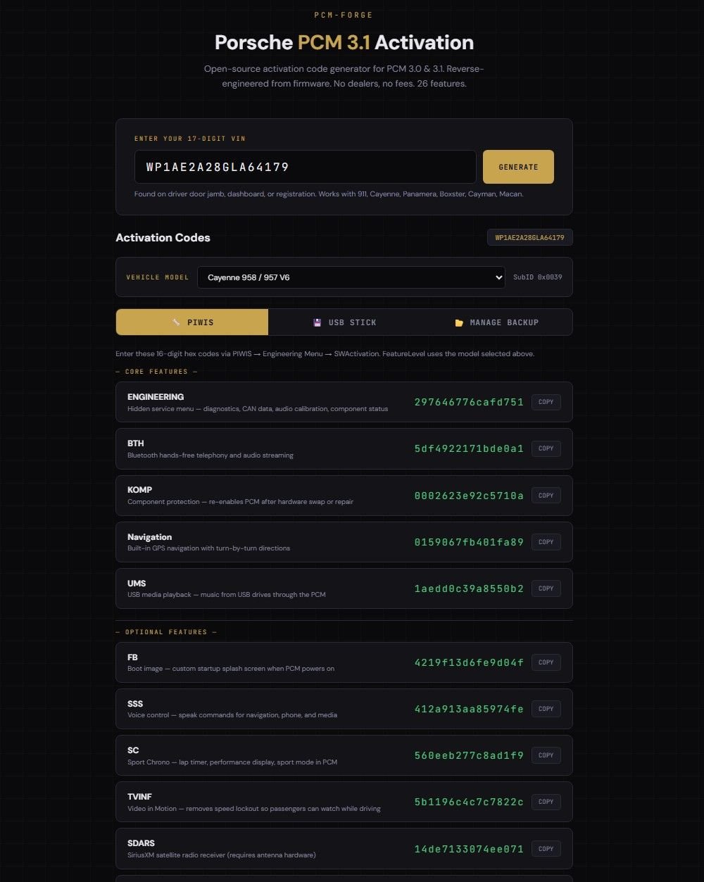 Now if the OP (or someone else) can figure out the algorithm for the ECU activation codes (like heated steering wheel and modules such as LED headlights), that would be the icing on the cake.