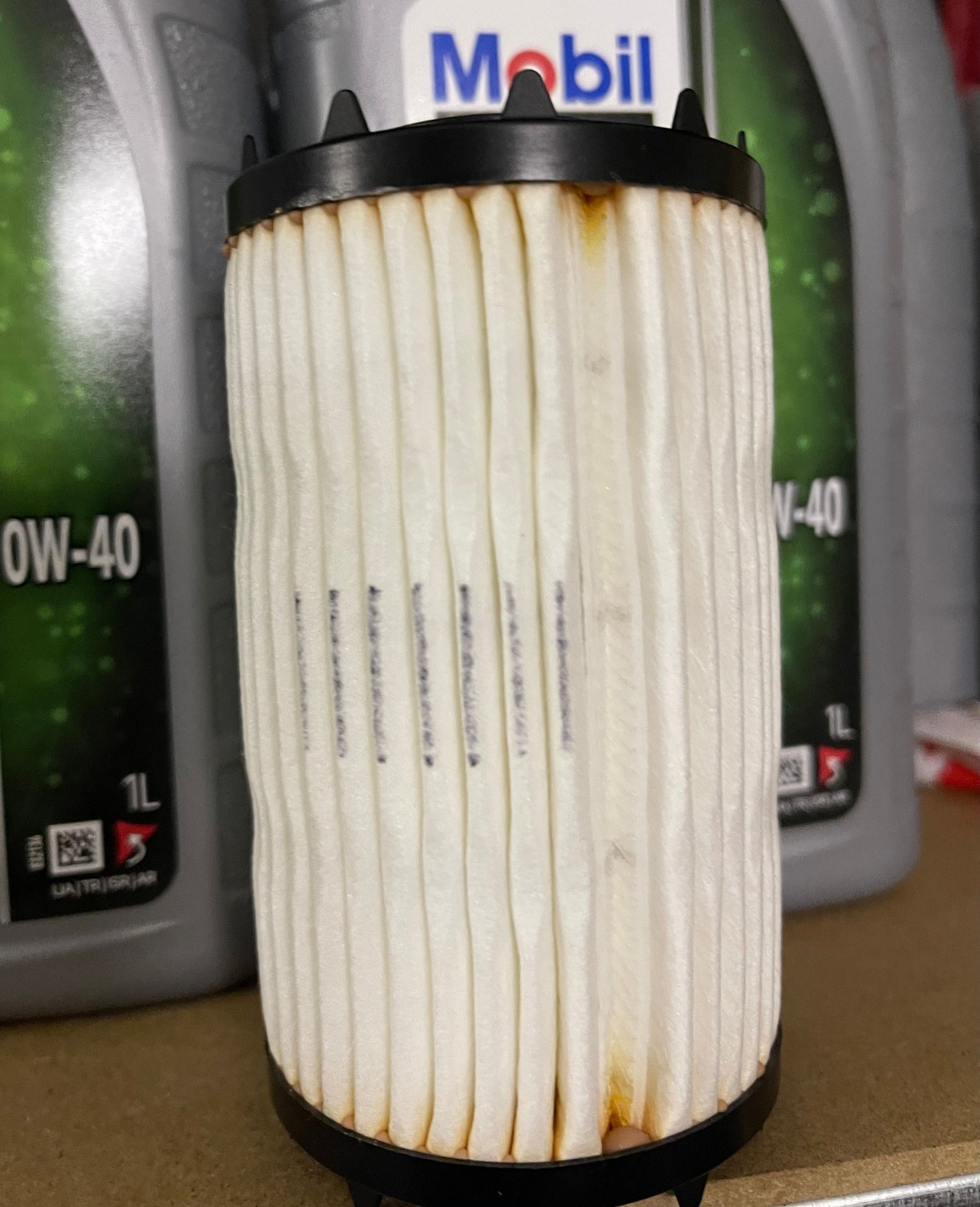 I received this oil filter yesterday and noticed some unusual discoloration or marks on the black material and surrounding areas (see photos). I haven’t seen this before and wanted to check if this is considered normal.