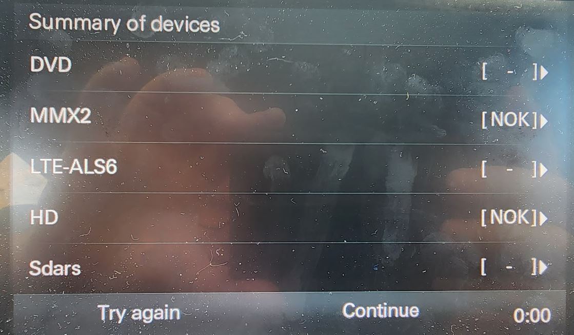 MMX2, HD, IOC, RCC, Gracenote2, SpeechAppRes, SpeechRes, sirius, MUConsistency - all have NOK on them.