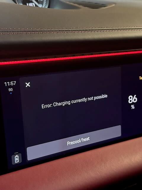 Getting a PCM (dash and Infotainment screen) error "Charging Not Possible". The charging port starts off green then switches to red. Issue is intermittent. Multiple charging stations tried.